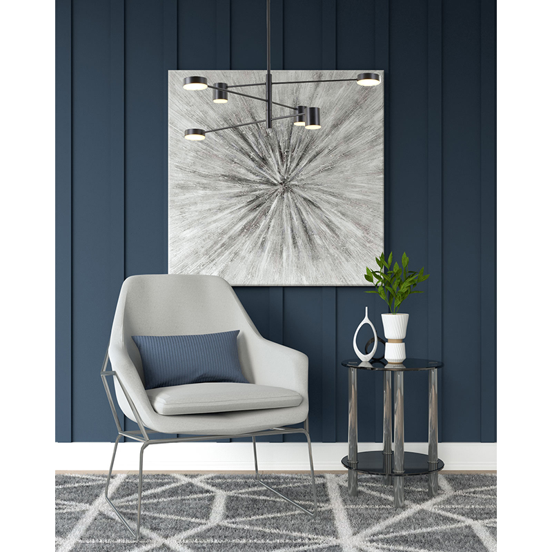 A THREE TIER BLACK METAL FRAME LED CEILING FIXTURE WITH WHITE DIFFUSERS