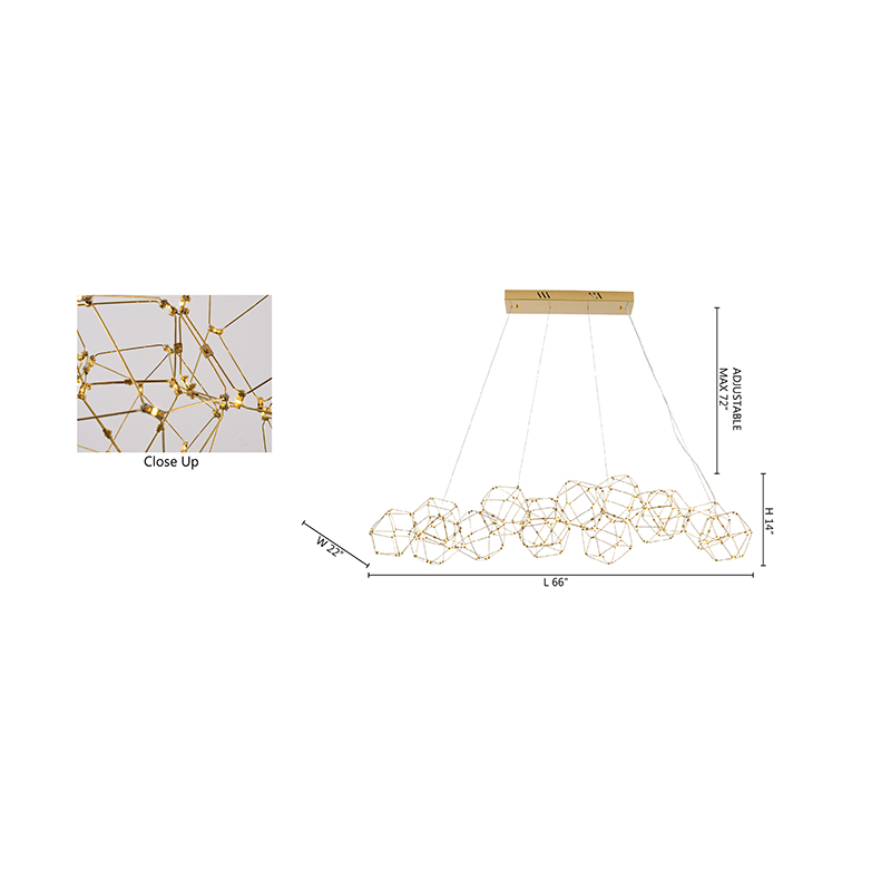 A GOLD LED STAR LIGHT NET CHANDELIER WITH GOLD HARDWARE