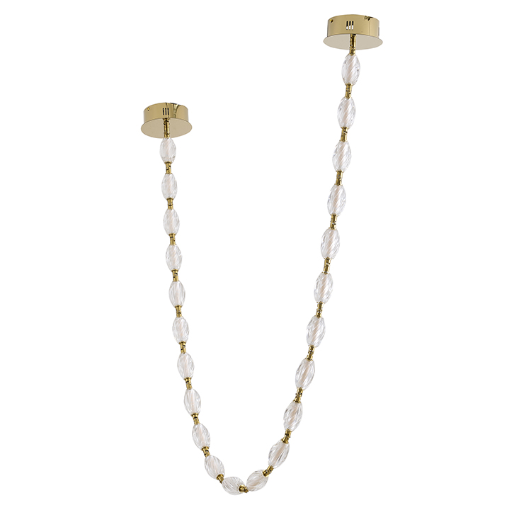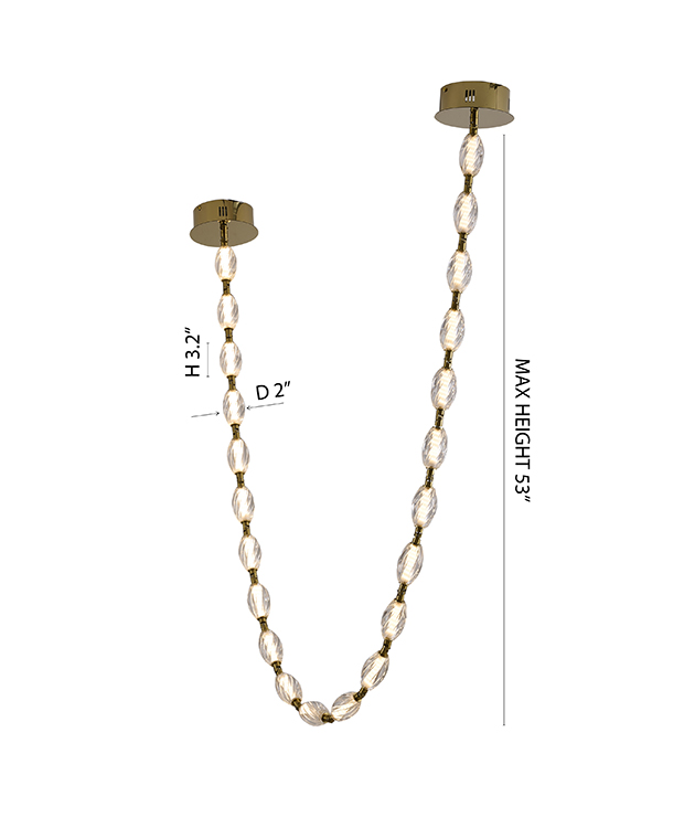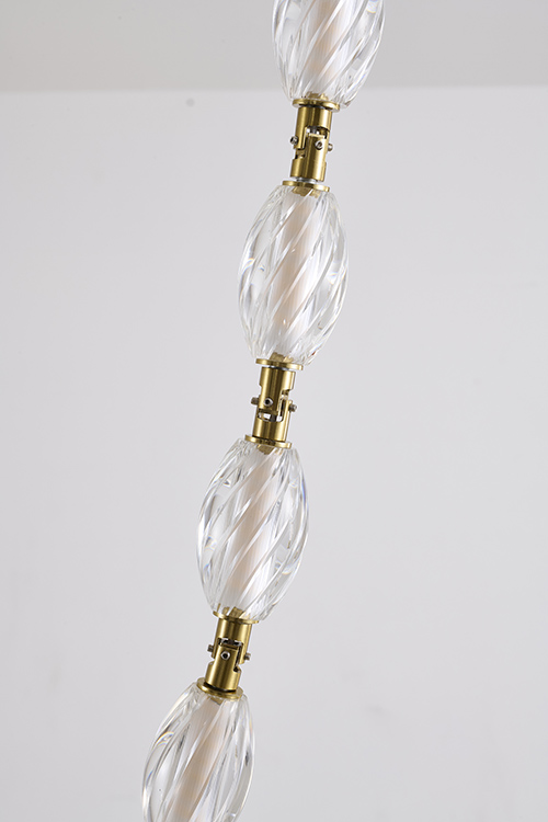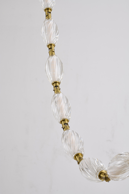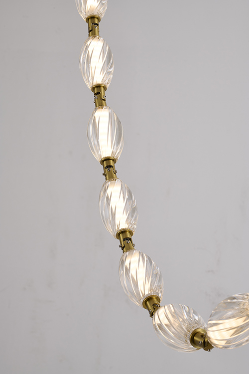 A CLEAR CRYSTAL BALL CHAIN LINK LIGHT WITH BRASS HARDWARE