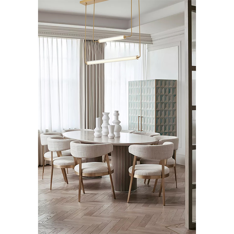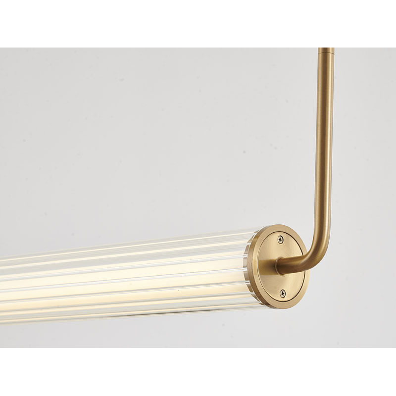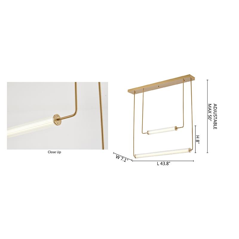 A BRASS FRAME LED CHANDELIER WITH A DOUBLE CLEAR & WHITE GLASS CYLINDER SHADE