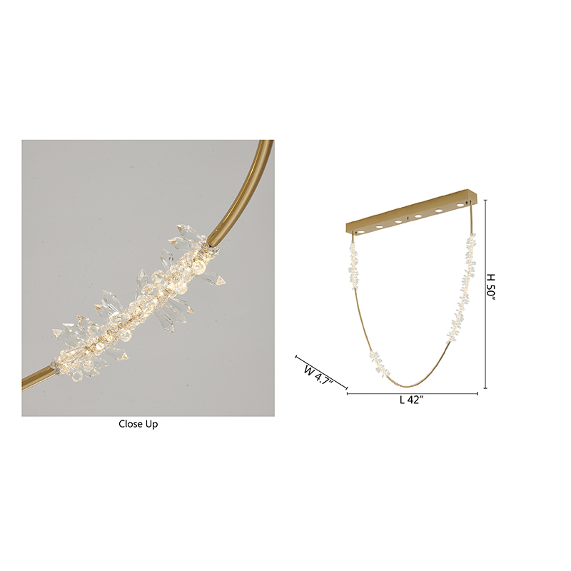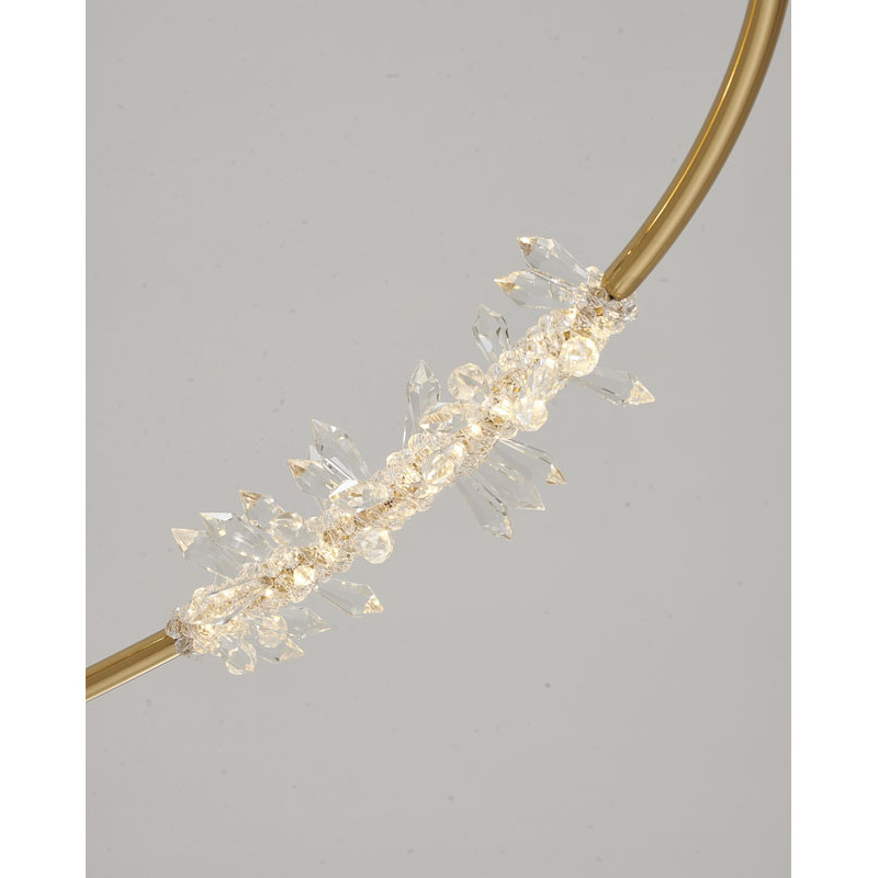 A GOLD HAIRLINE HOOP ROPE CHANDELIER WITH CLEAR CRYSTAL DETAILS