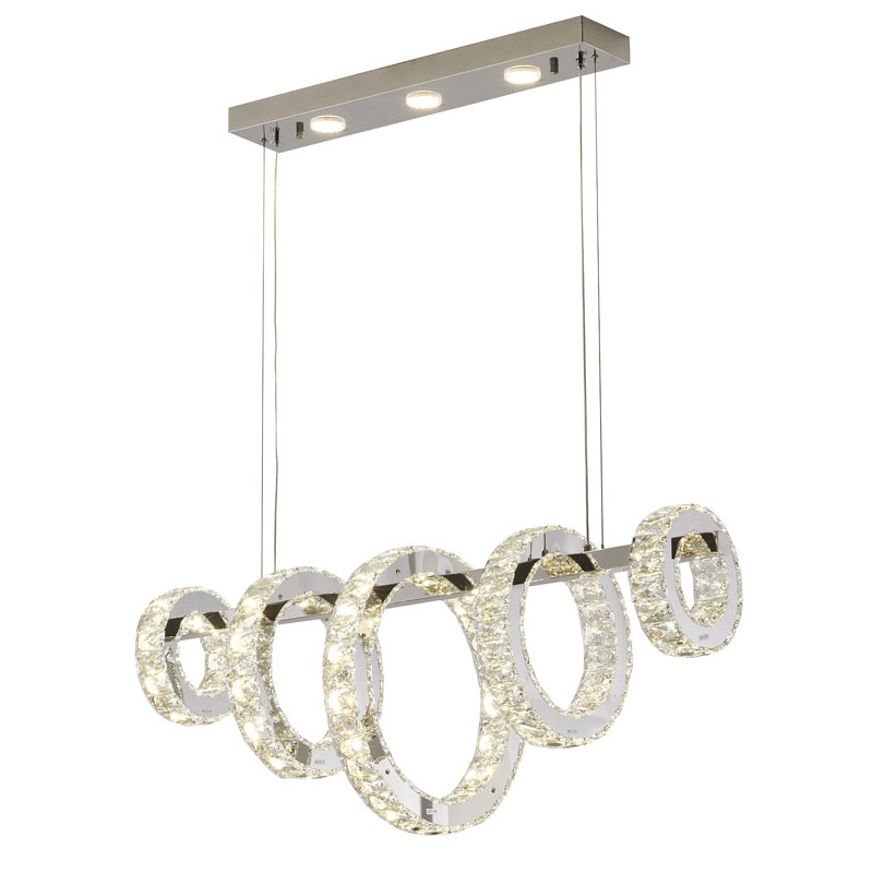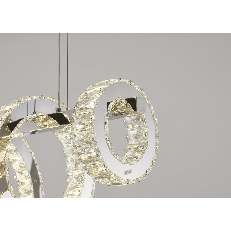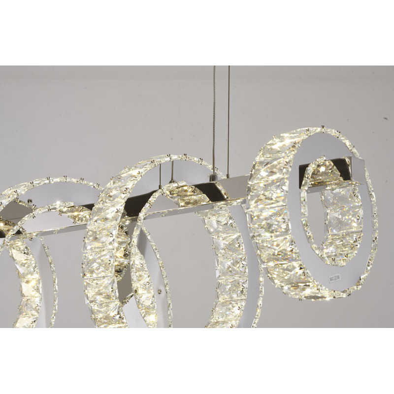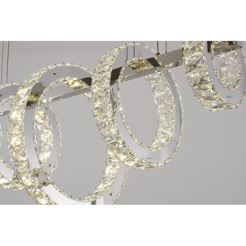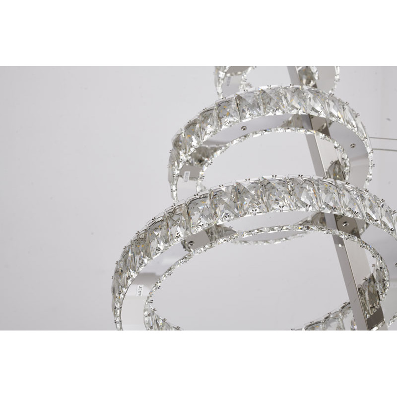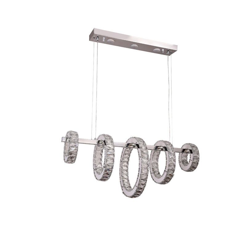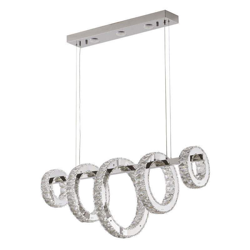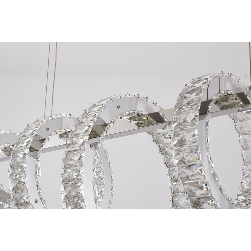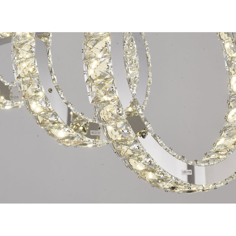 A FIVE RING CHROME FRAME LED CHANDELIER WITH CLEAR CRYSTALS
