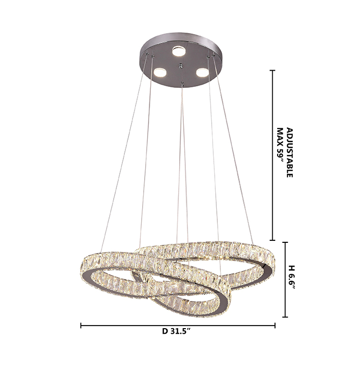 A CLEAR CRYSTAL DOUBLE TWISTED RING LED CHANDELIER