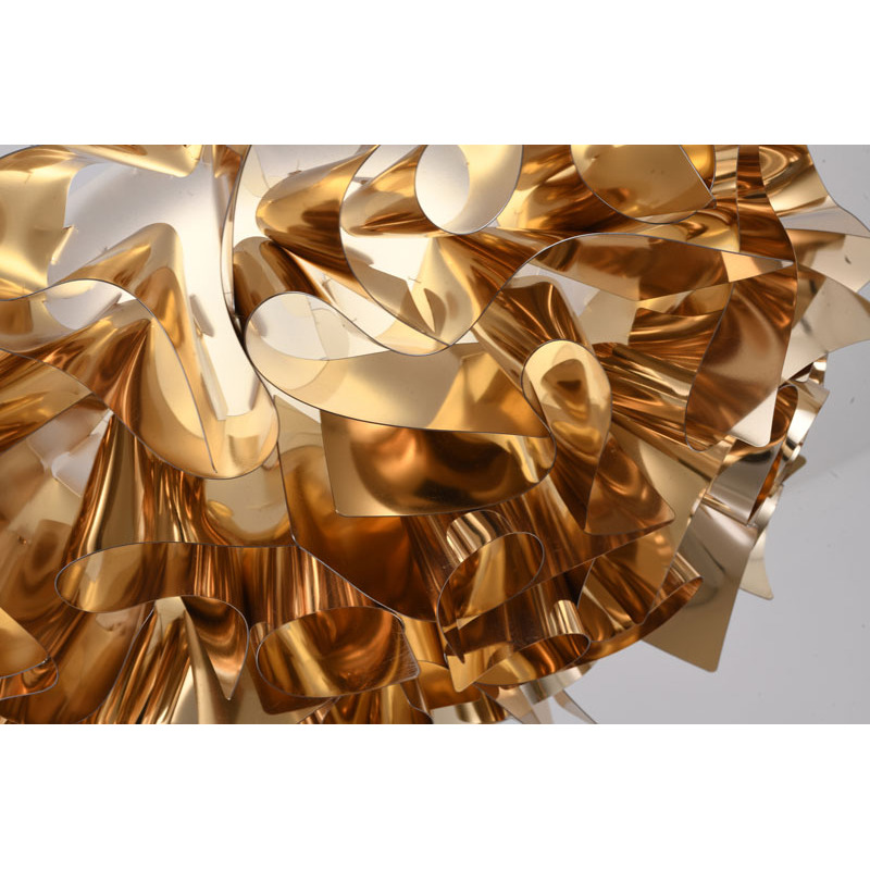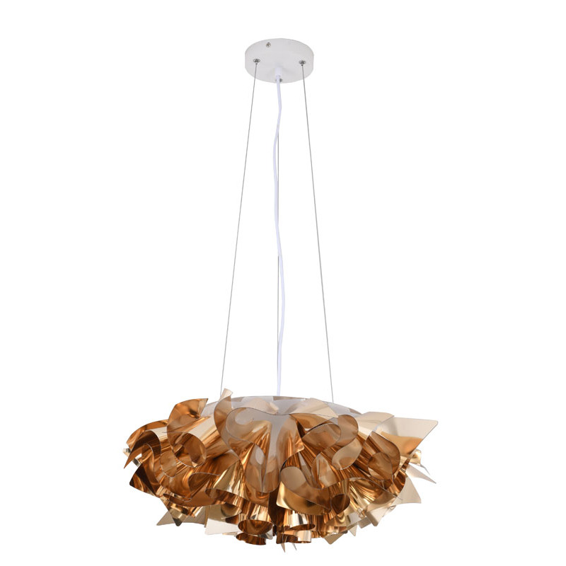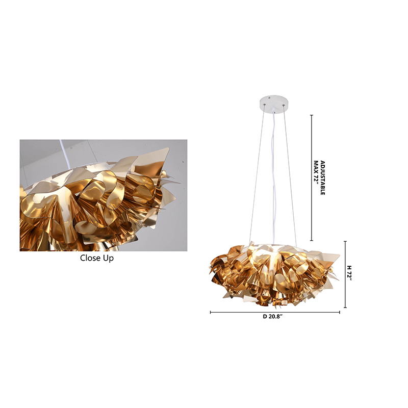 A SHINY GOLD ACRYLIC CHANDELIER WITH WHITE HARDWARE