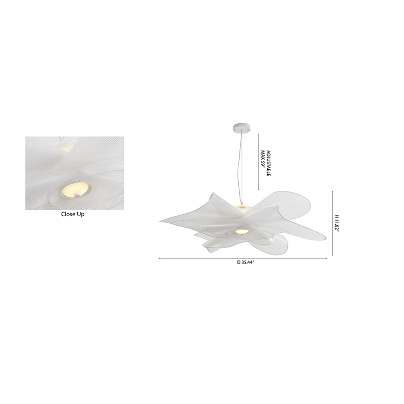 A WHITE PVC NET LED CHANDELIER WITH WHITE HARDWARE