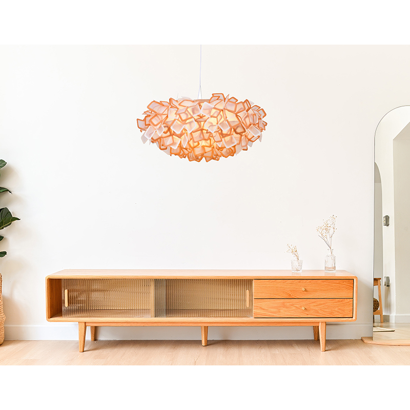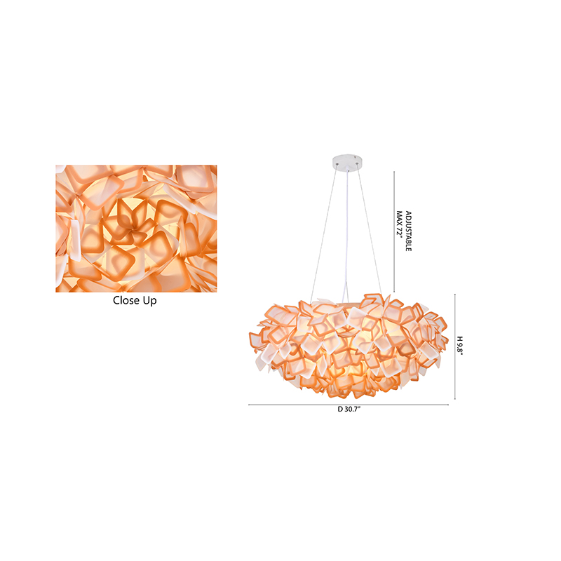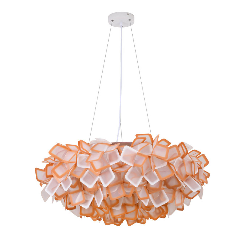 A WHITE AND ORANGE ACRYLIC LED CLOUD CHANDELIER WITH WHITE HARDWARE