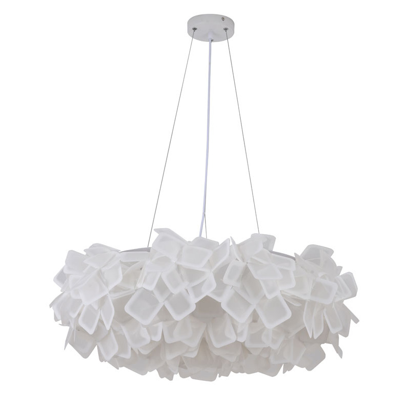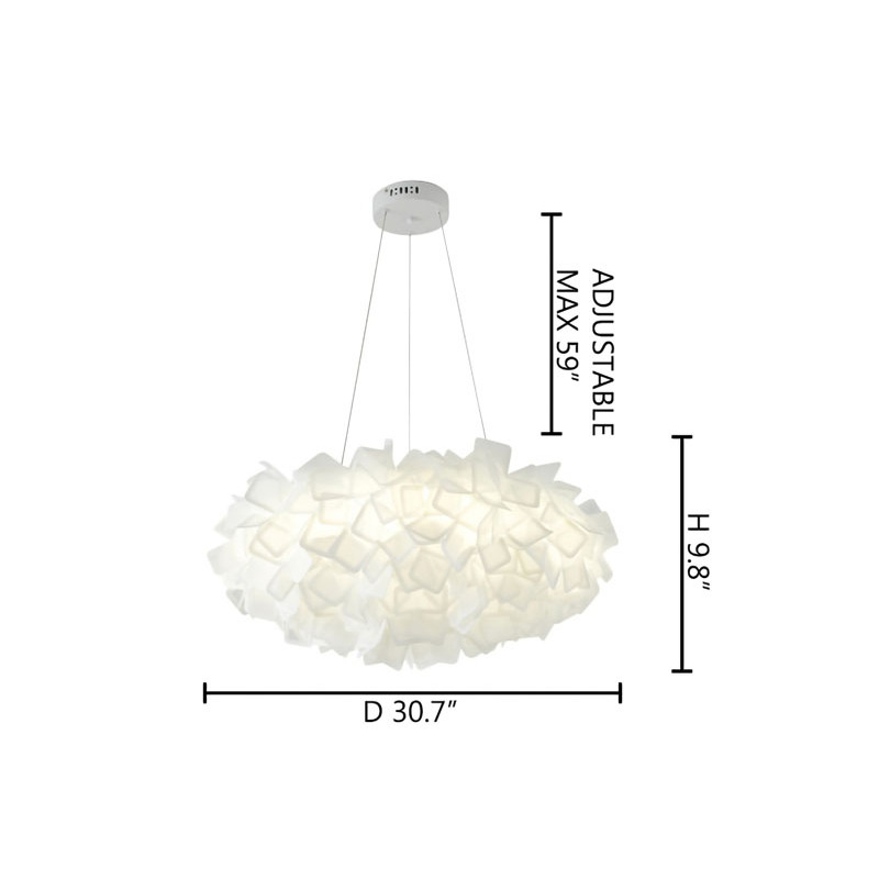 A WHITE ACRYLIC CLOUD CHANDELIER WITH WHITE HARDWARE