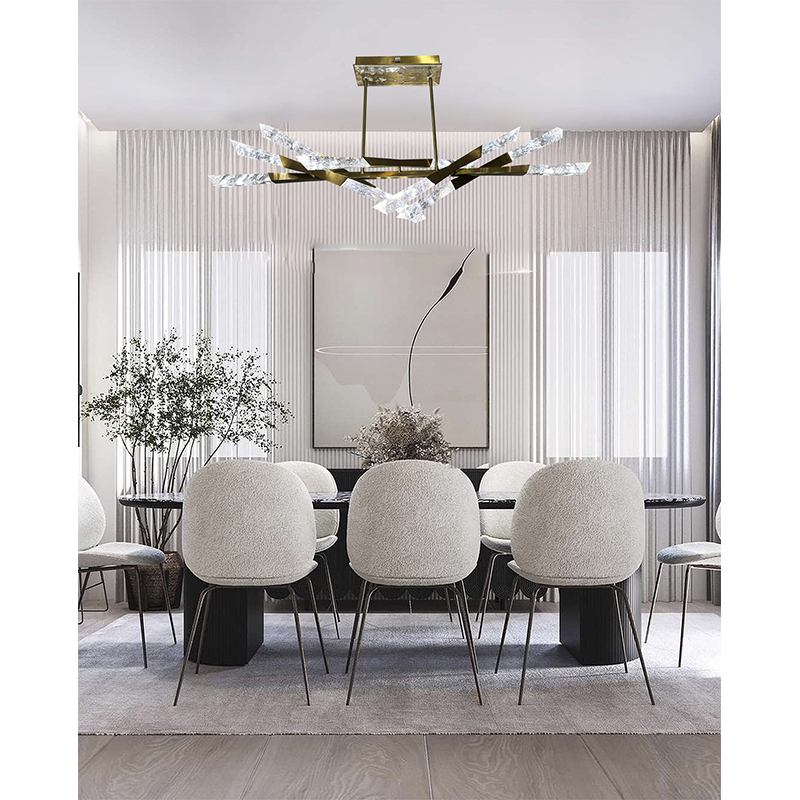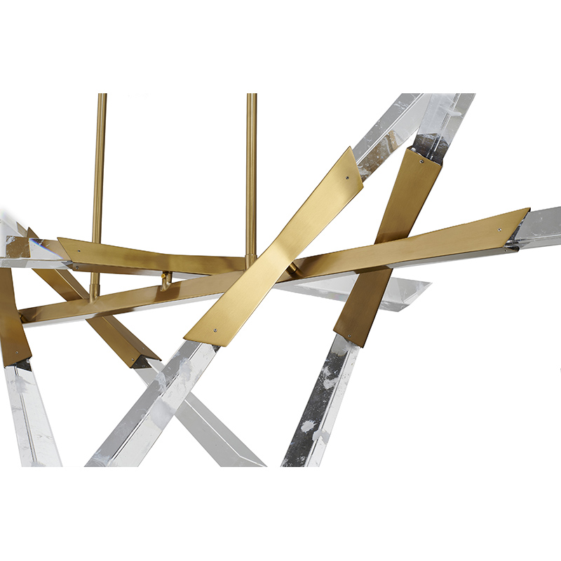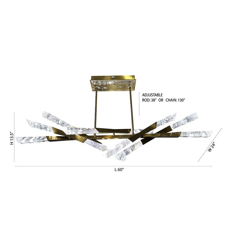 DIMMABLE SATIN BRASS STAINLESS STEEL LED CHANDELIER WITH CLEAR SNOWFLAKE CRYSTALS