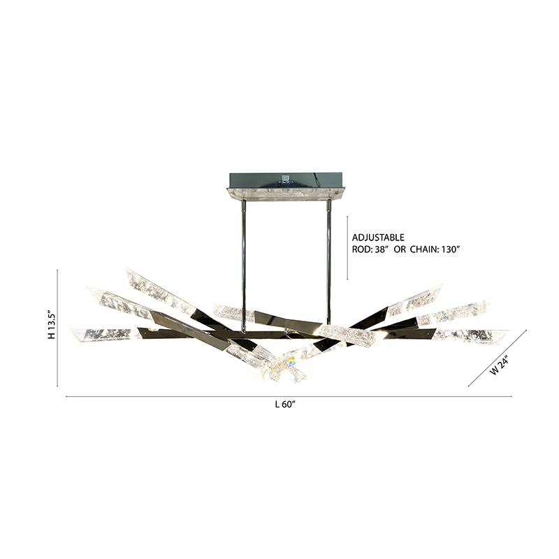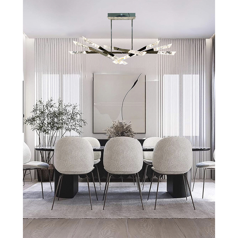 DIMMABLE SHINY NICKEL STAINLESS STEEL LED CHANDELIER WITH CLEAR SNOWFLAKE CRYSTALS