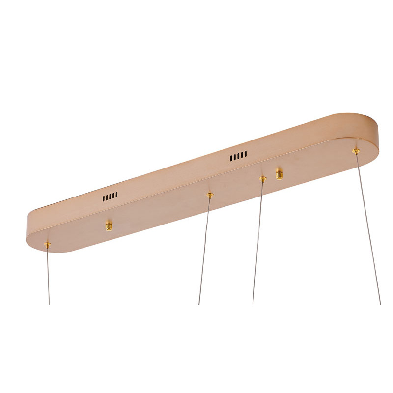 A GOLD TWO INTERLOCKED RING LED CHANDELIER WITH A CLEAR ACRYLIC DIFFUSER