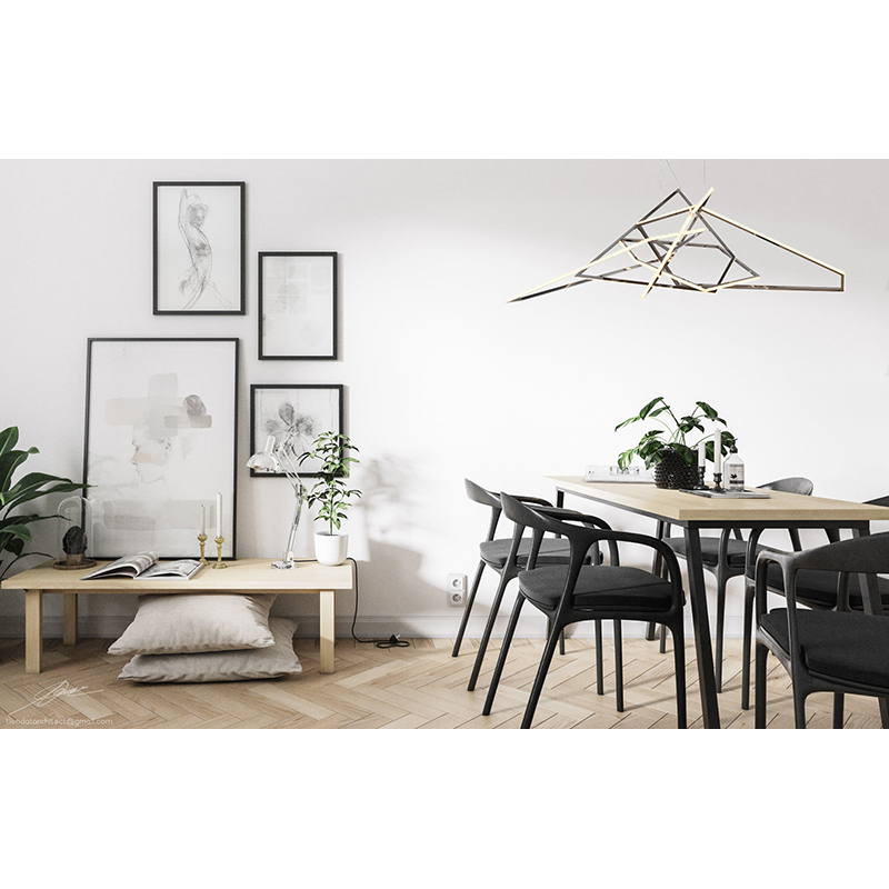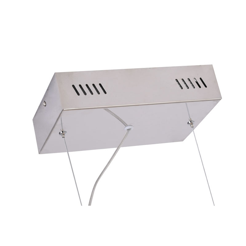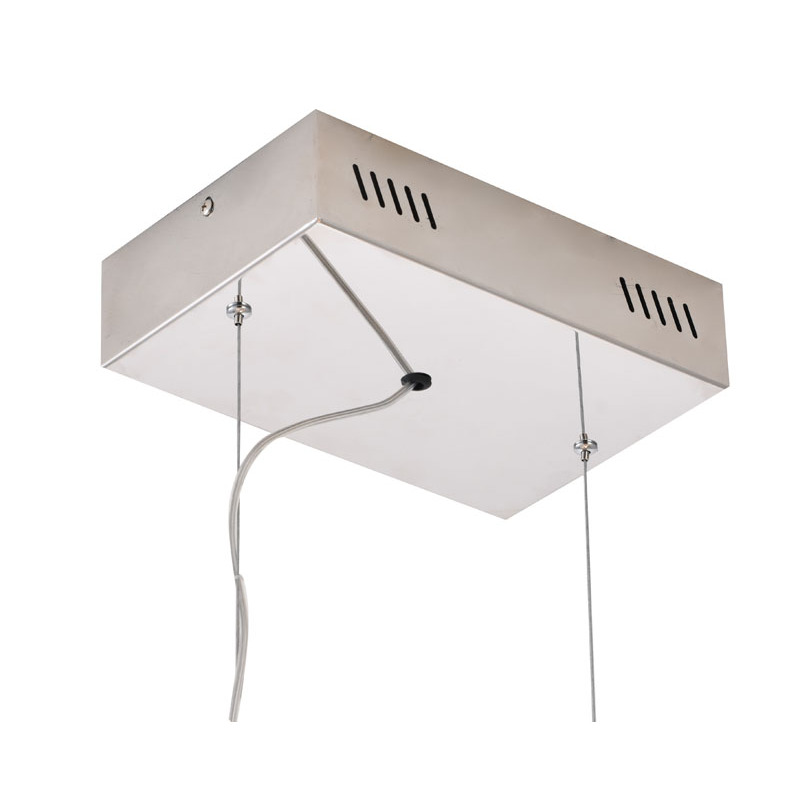 A CHROME STAINLESS STEEL LED CHANDELIER WITH WHITE ACRYLIC DIFFUSERS