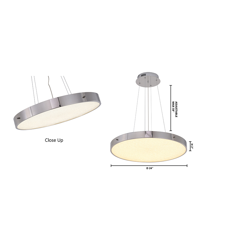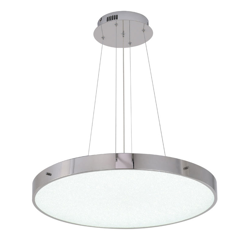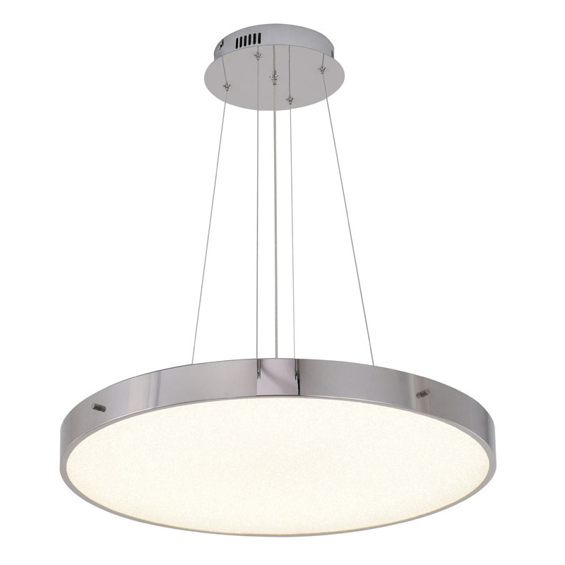 A CHROME FRAME LED CHANDELIER WITH A CLEAR ACRYLIC BEADED DIFFUSER