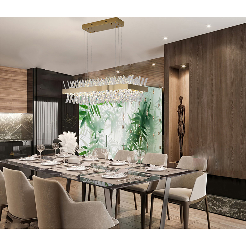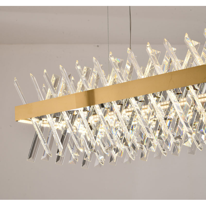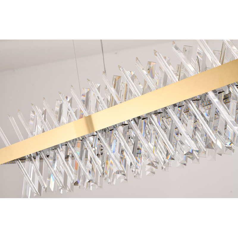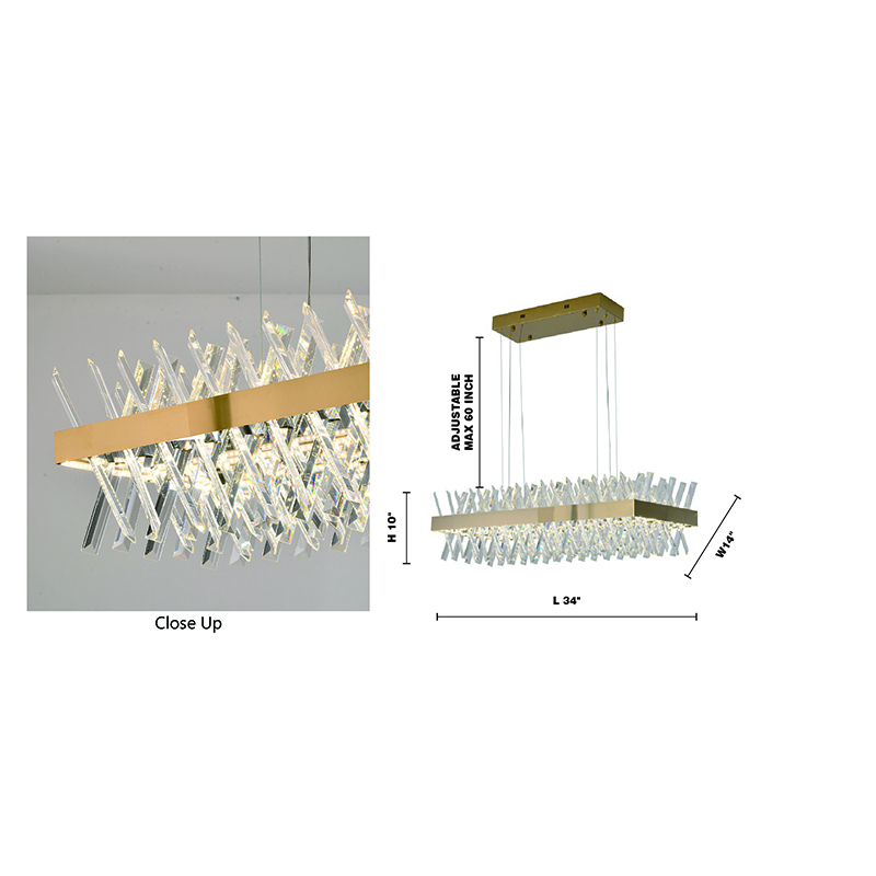 A RECTANGULAR GOLD FRAME CHANDELIER WITH CLEAR CRYSTALS