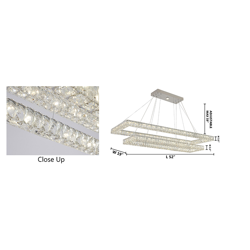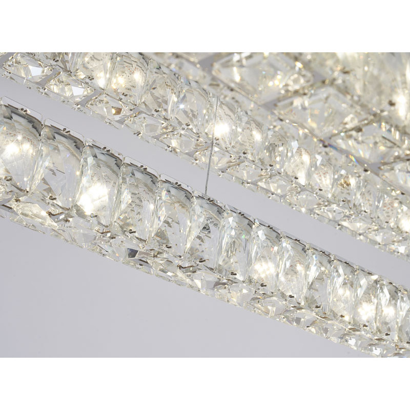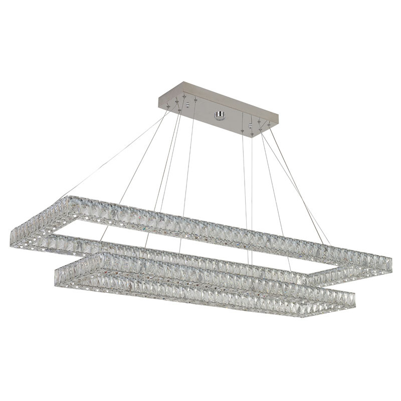 A TWO TIER RECTANGULAR CLEAR CRYSTAL CHANDELIER WITH CHROME HARDWARE