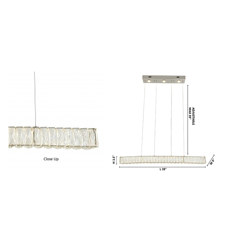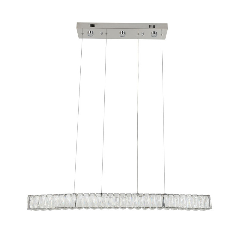 A LONG RECTANGULAR CLEAR CRYSTAL LED CHANDELIER WITH CHROME HARDWARE
