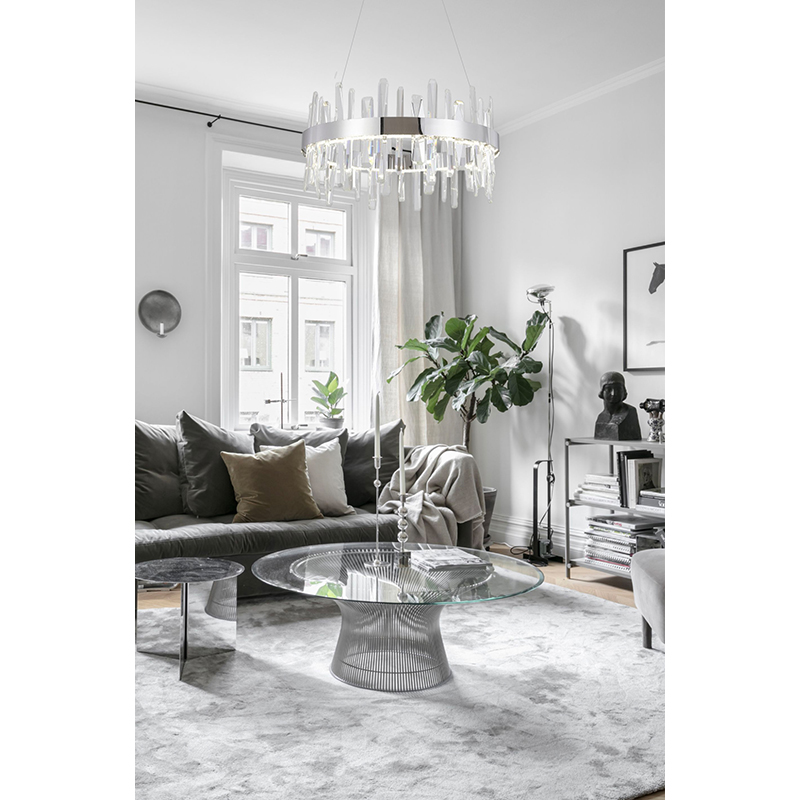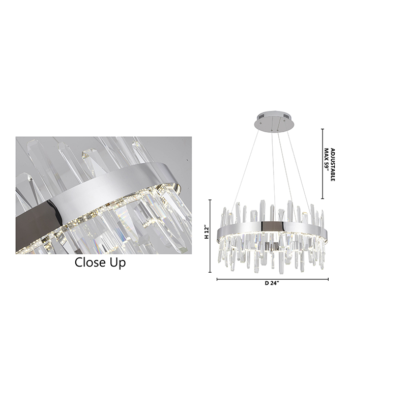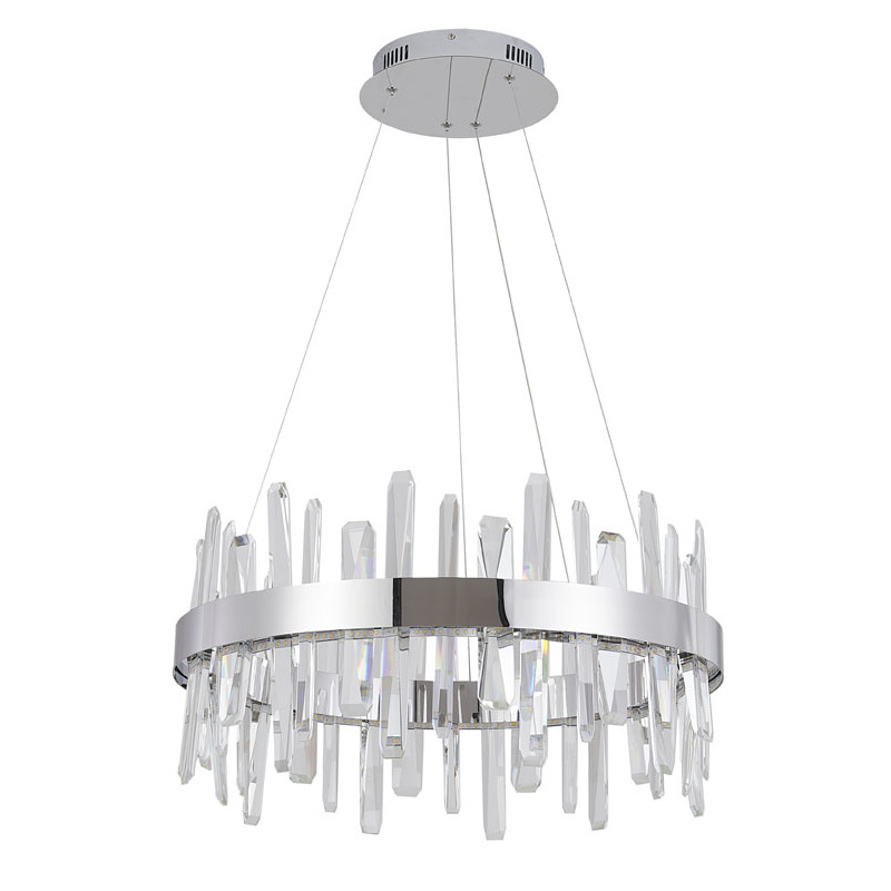 A CHROME STAINLESS STEEL FRAME LED CHANDELIER WITH CLEAR CRYSTALS