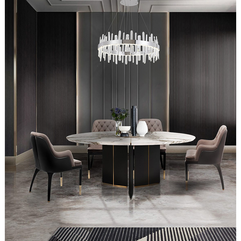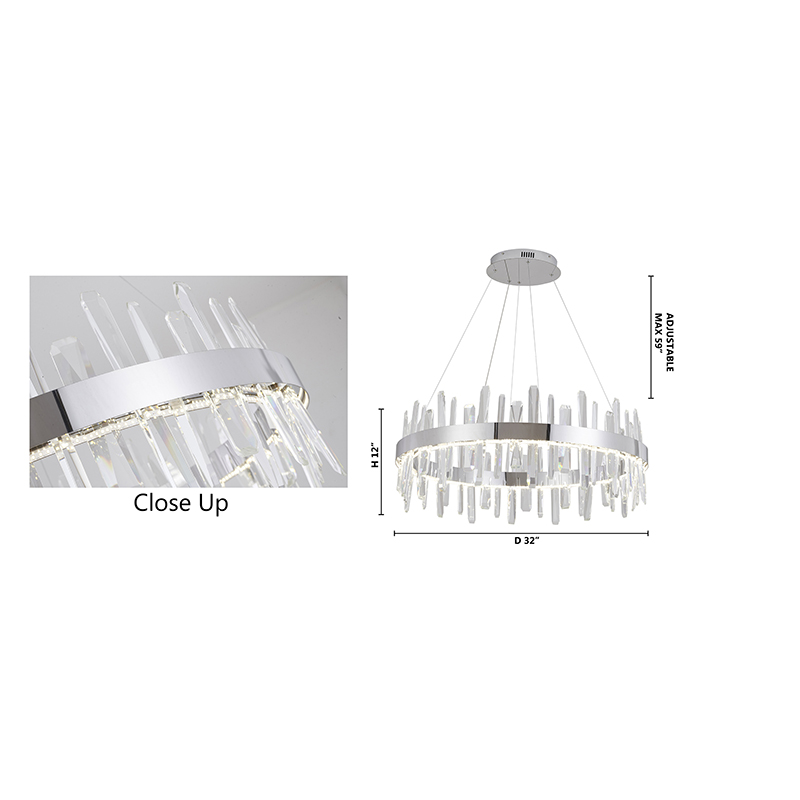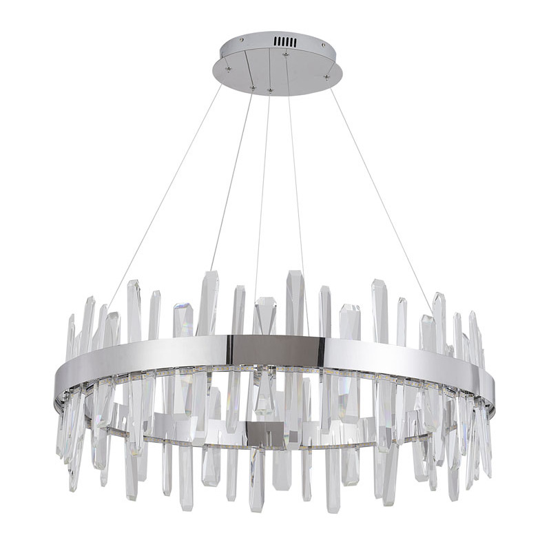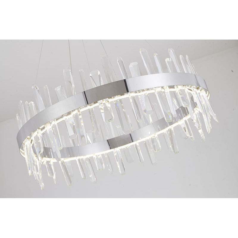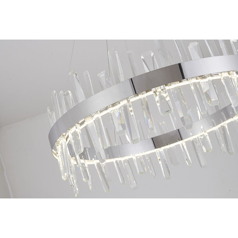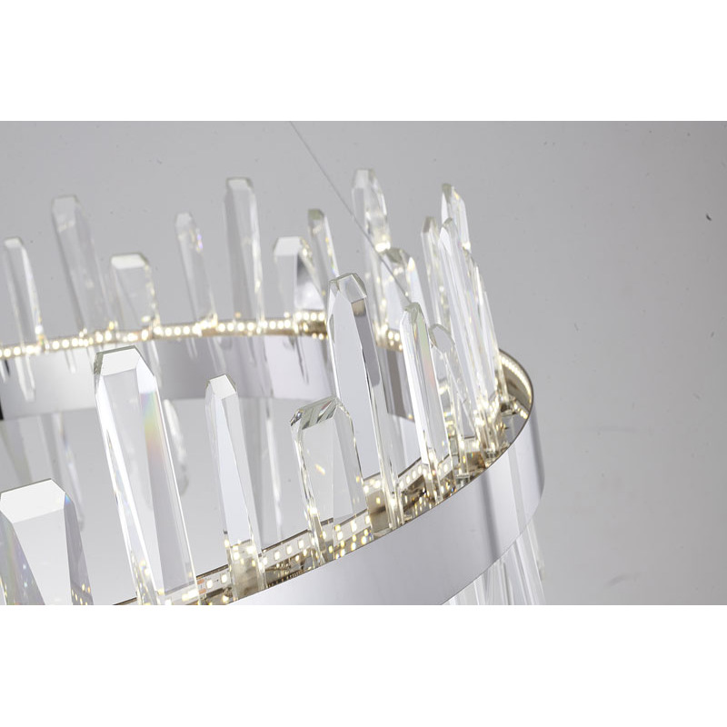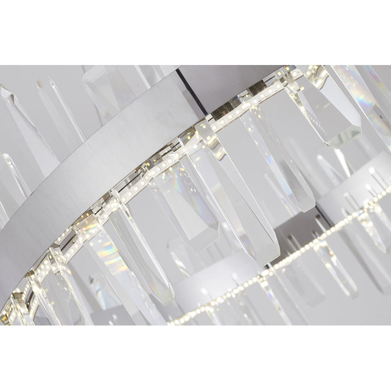 A CHROME STAINLESS STEEL FRAME LED CHANDELIER WITH CLEAR CRYSTALS
