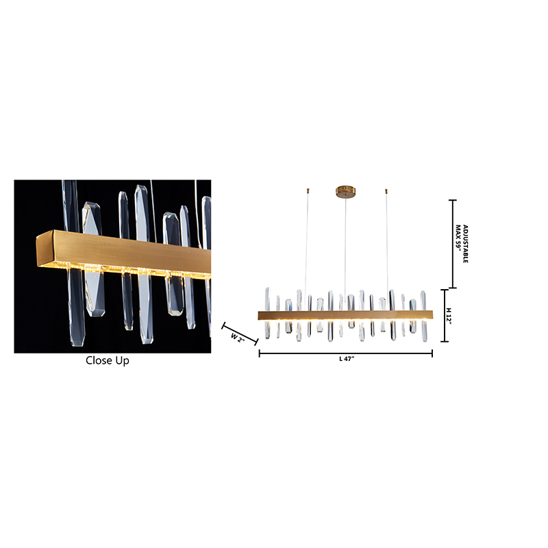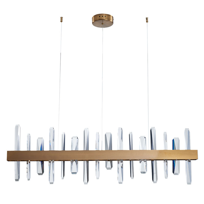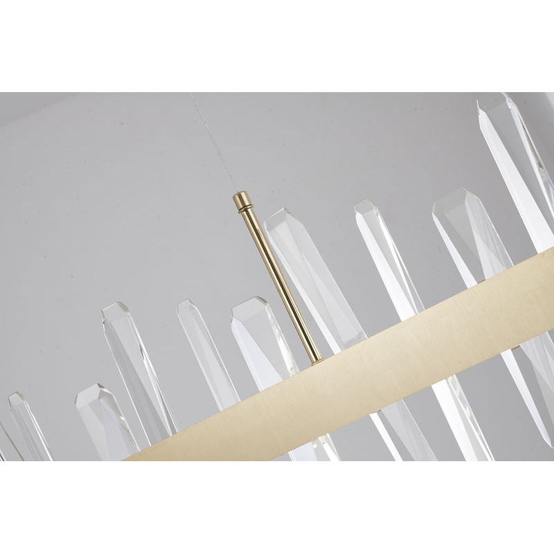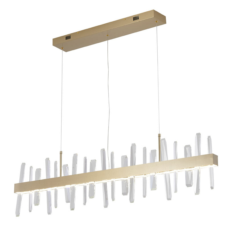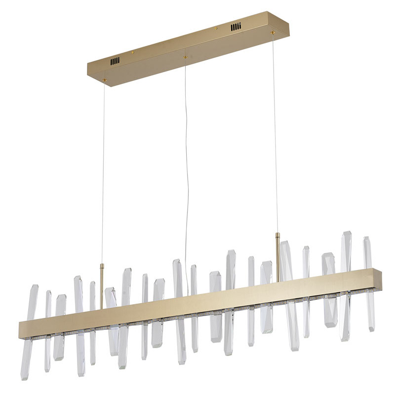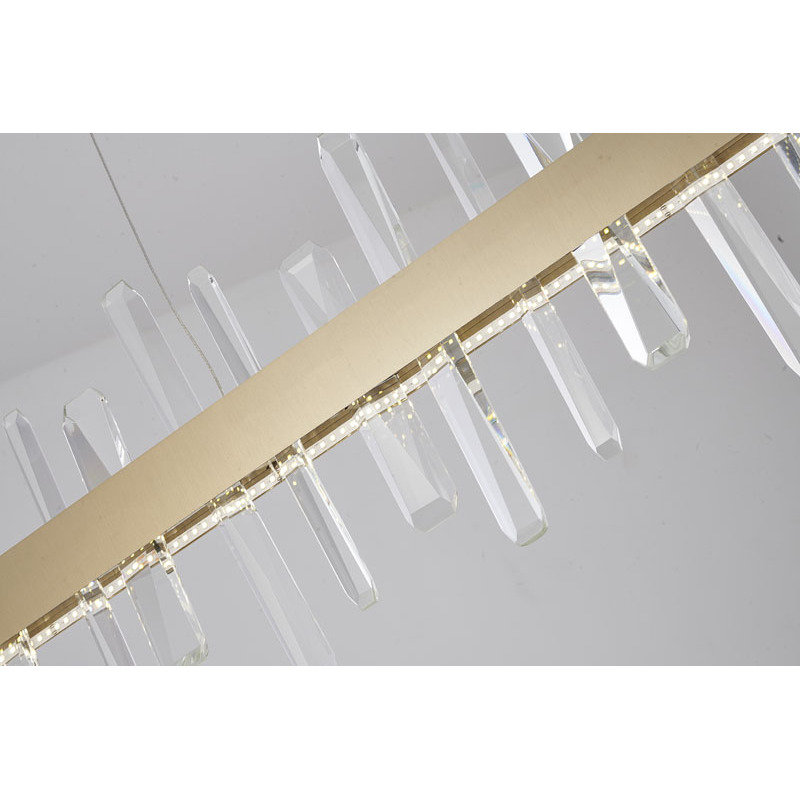 A GOLD LINEAR STAINLESS STEEL FRAMED LED CHANDELIER WITH CLEAR CRYSTALS