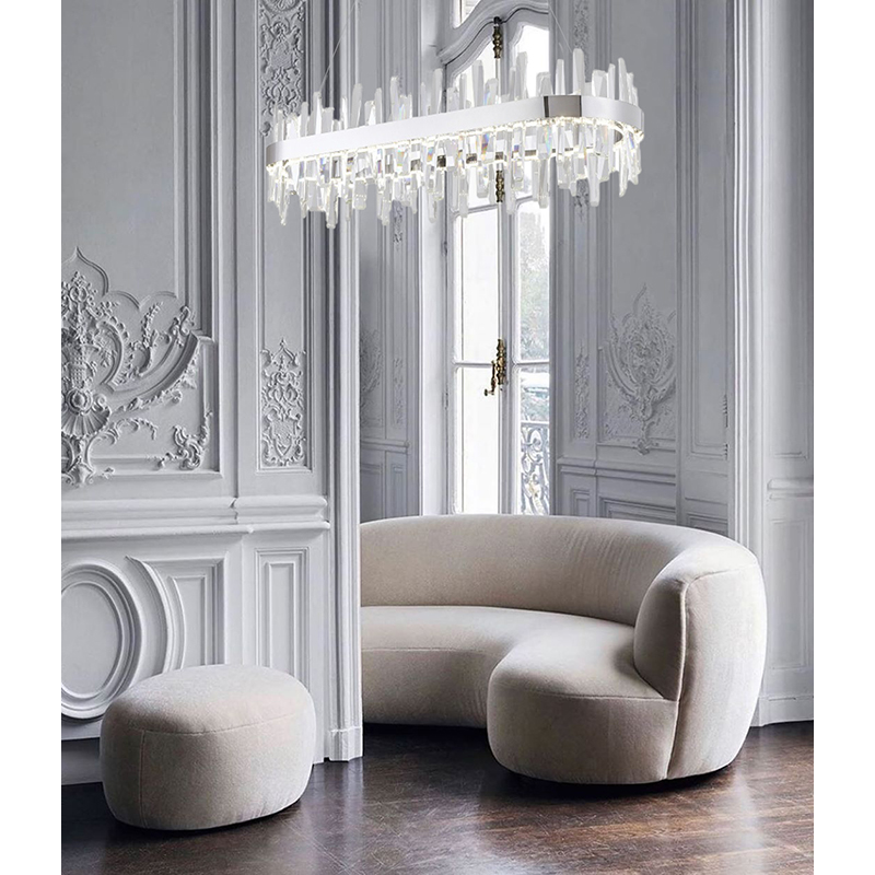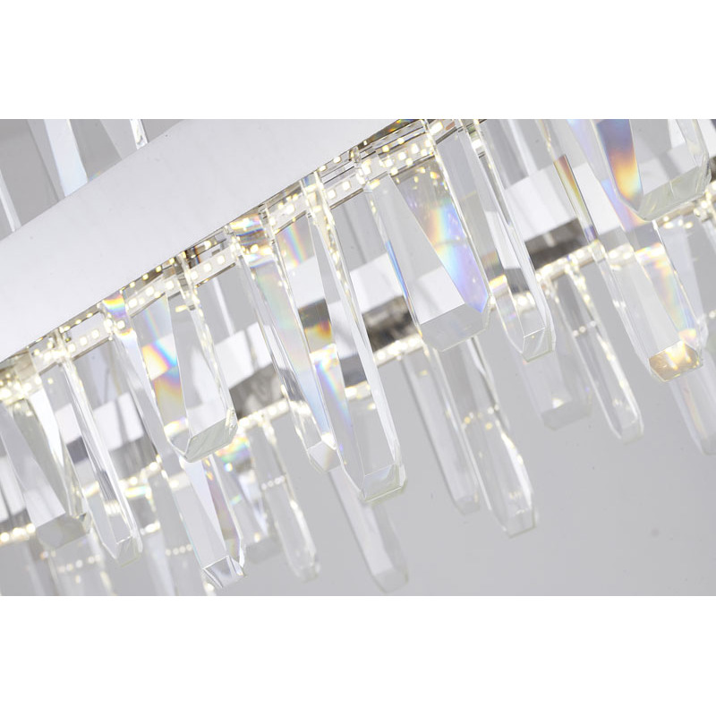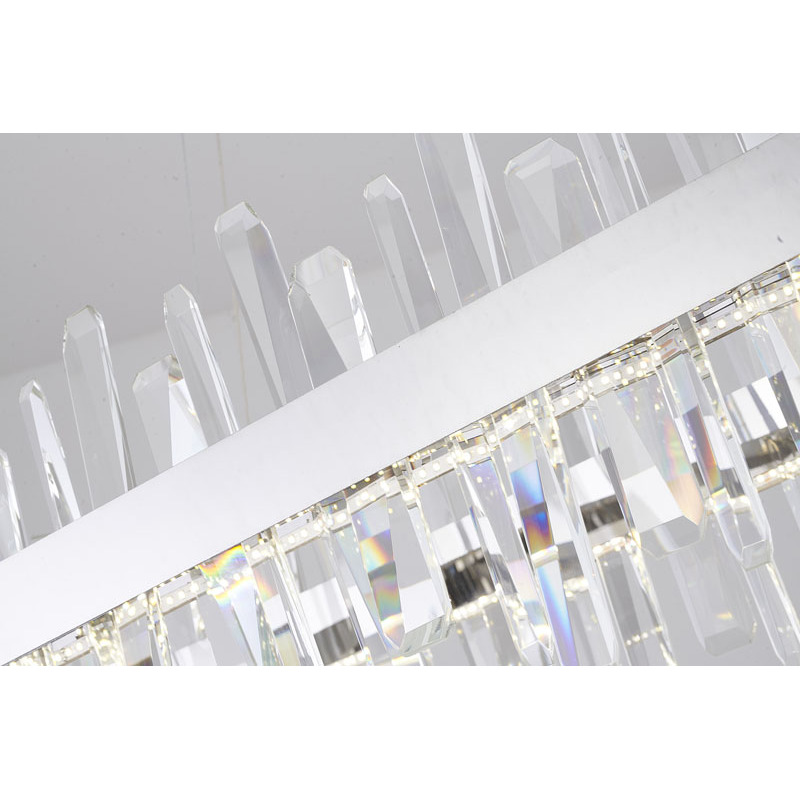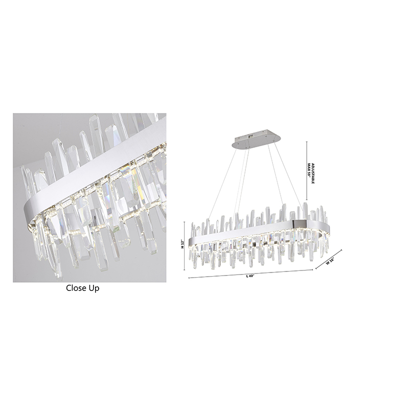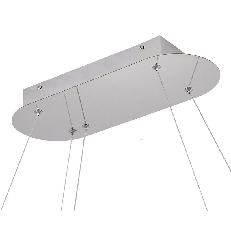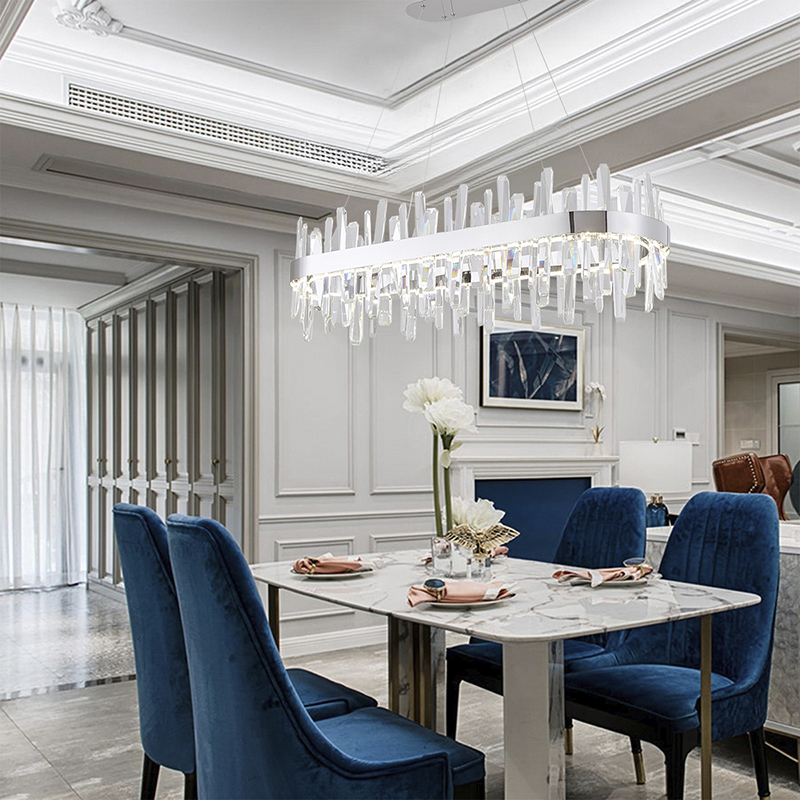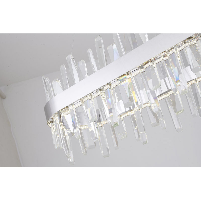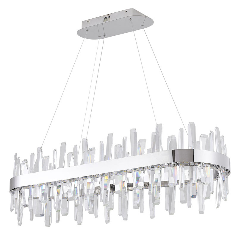 A CHROME OVAL STAINLESS STEEL FRAME CHANDELIER WITH CLEAR CRYSTALS