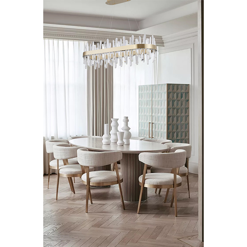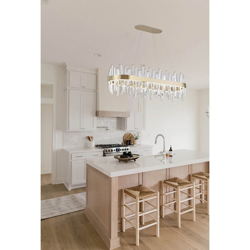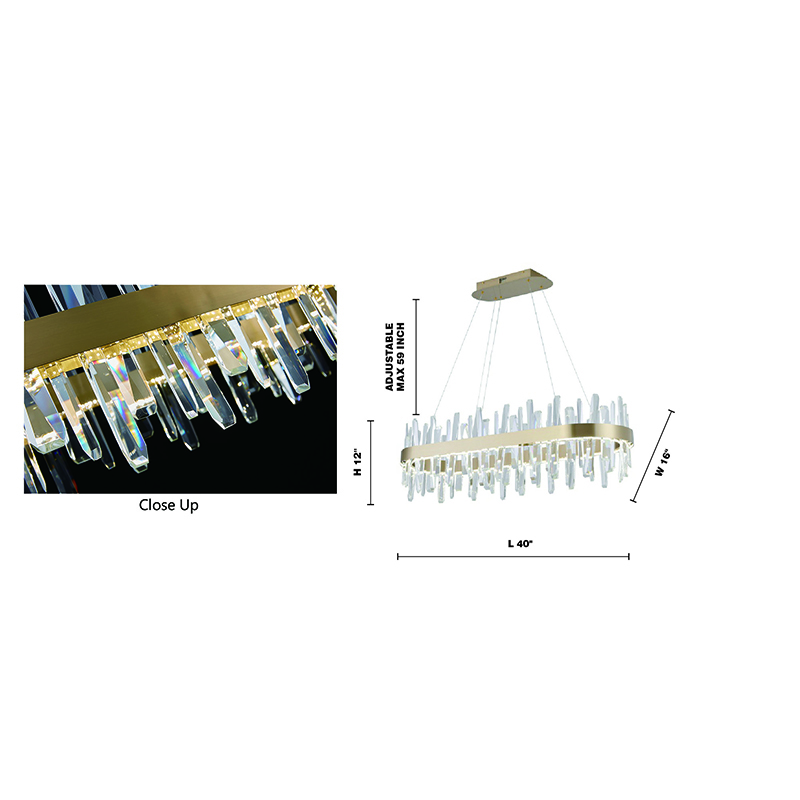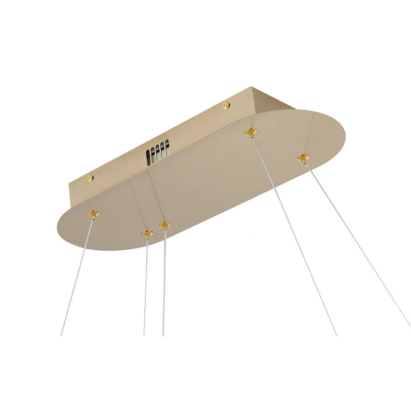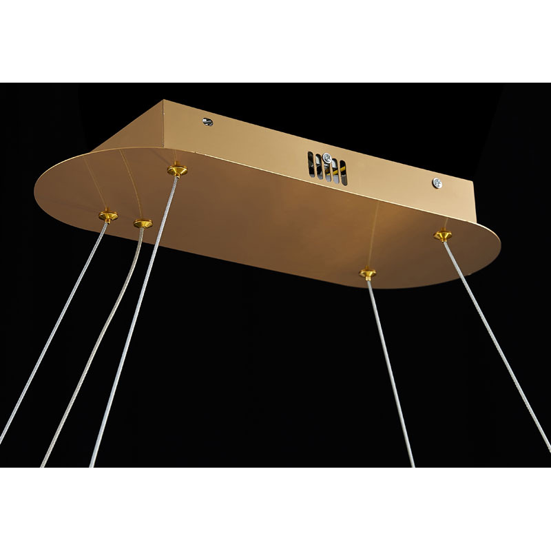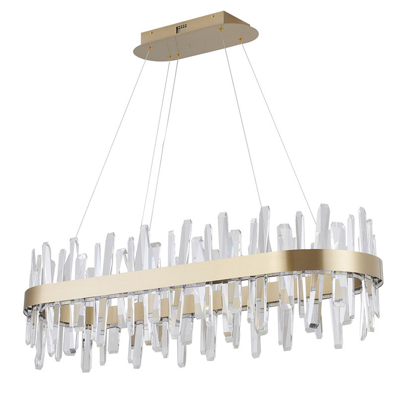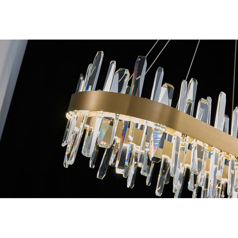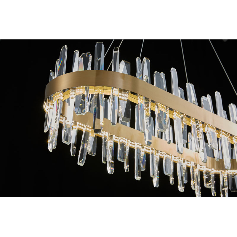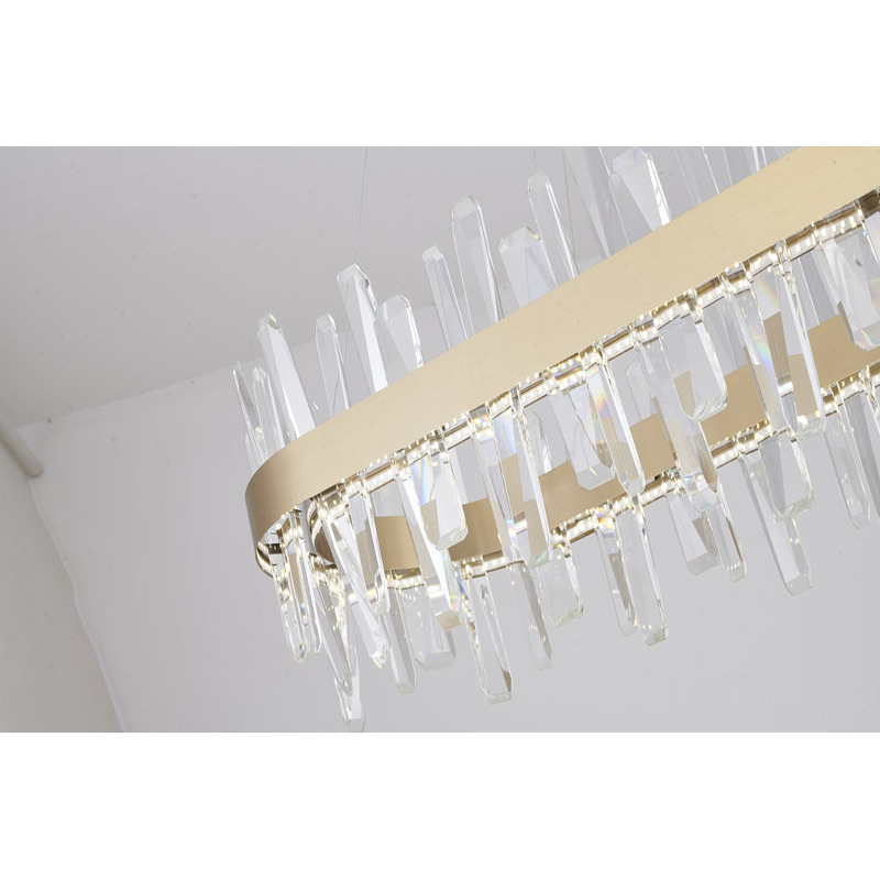 AN OVAL GOLD STAINLESS STEEL FRAME LED CHANDELIER WITH CLEAR CRYSTALS