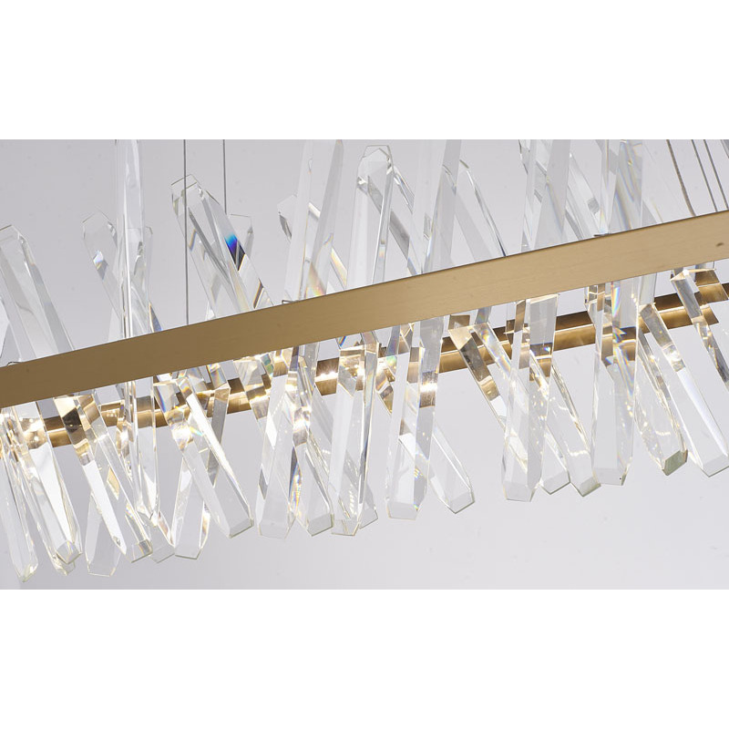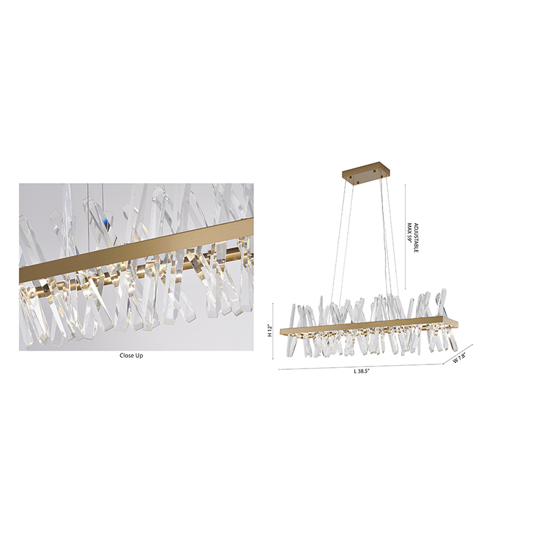 A GOLD HAIRLINE FRAME LED CHANDELIER WITH CLEAR CRYSTALS