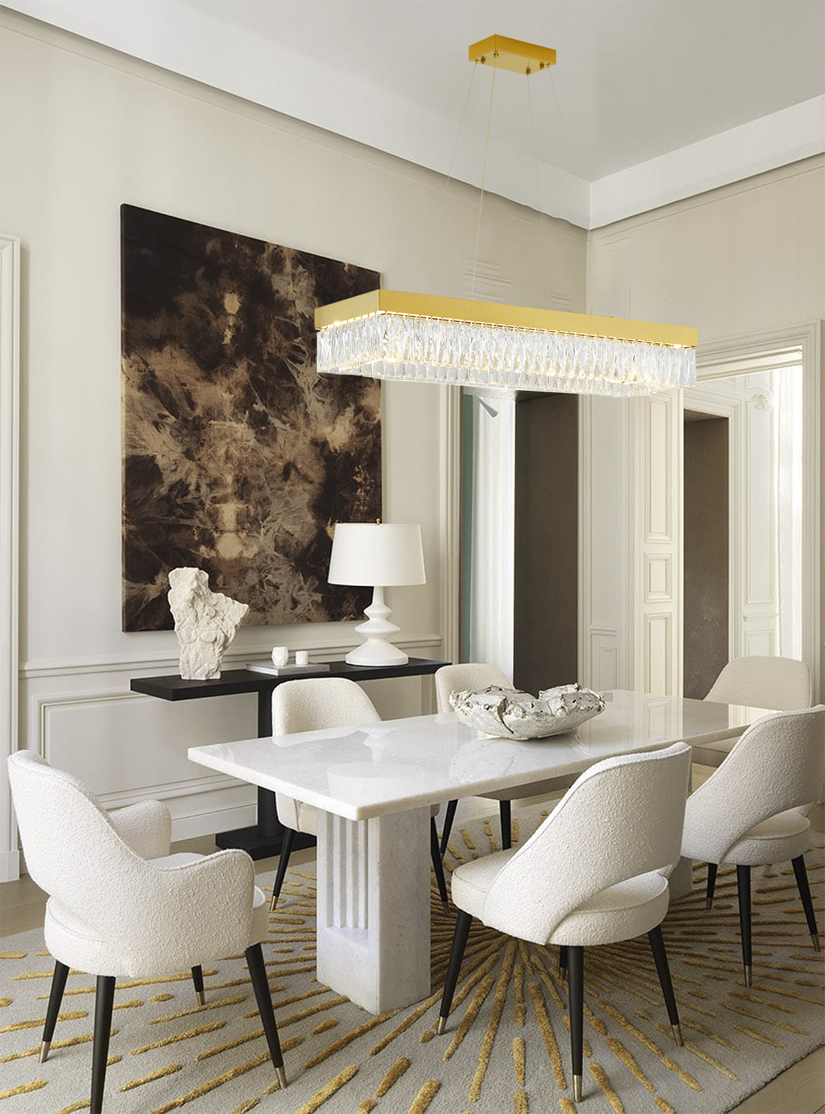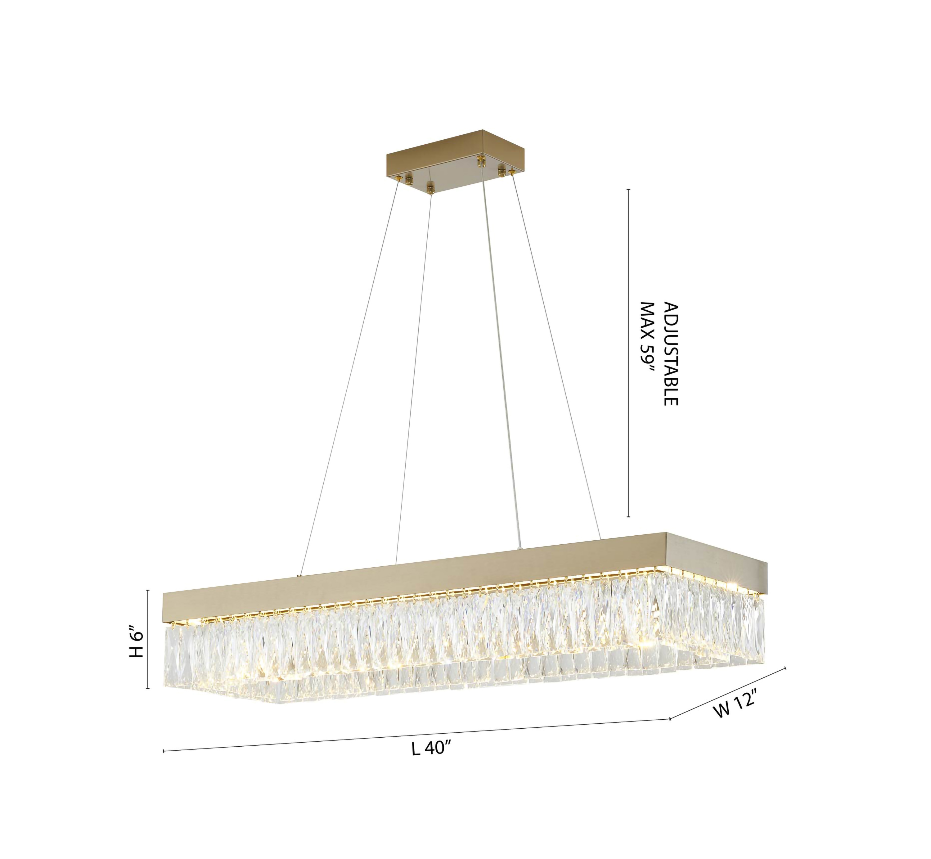 A GOLD HAIRLINE FRAME LED CHANDELIER WITH CLEAR HANGING CRYSTALS