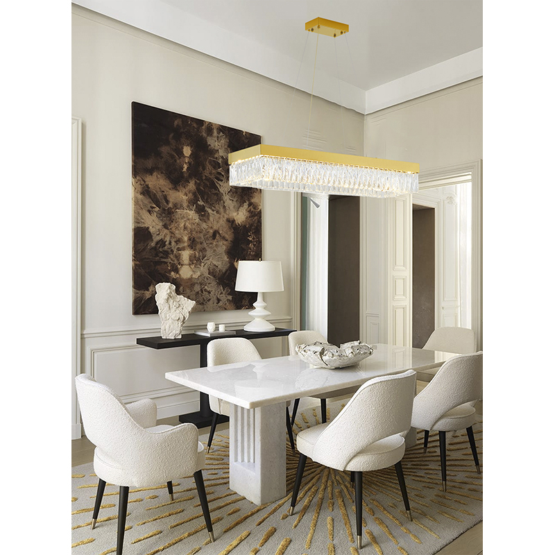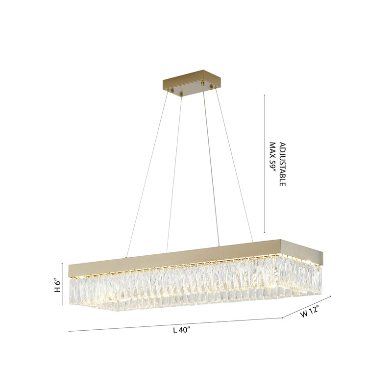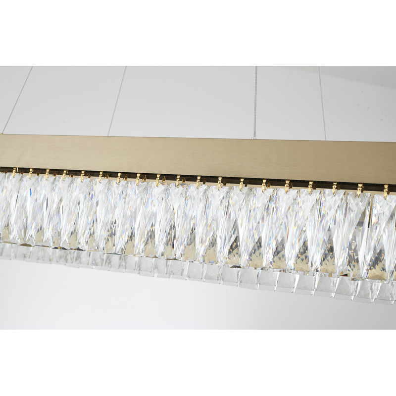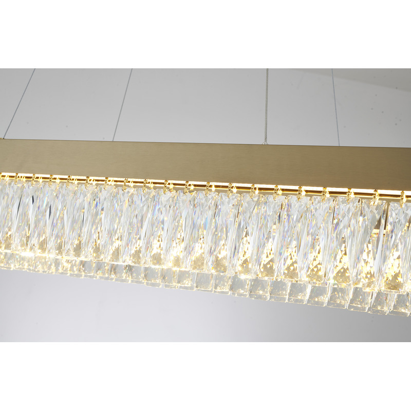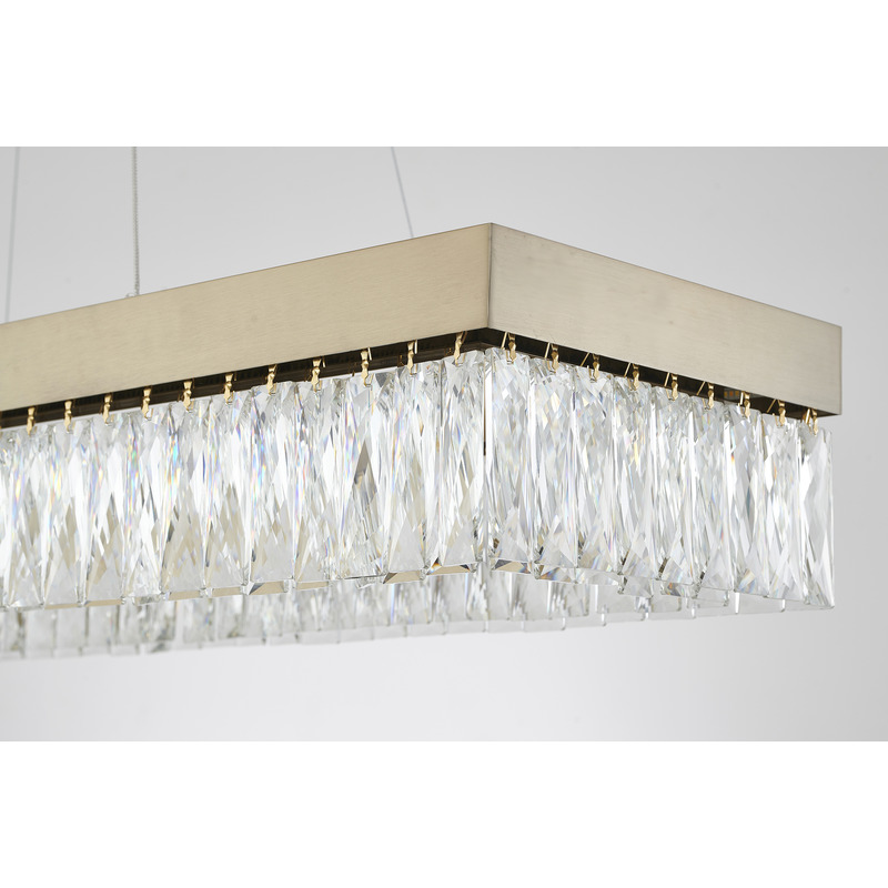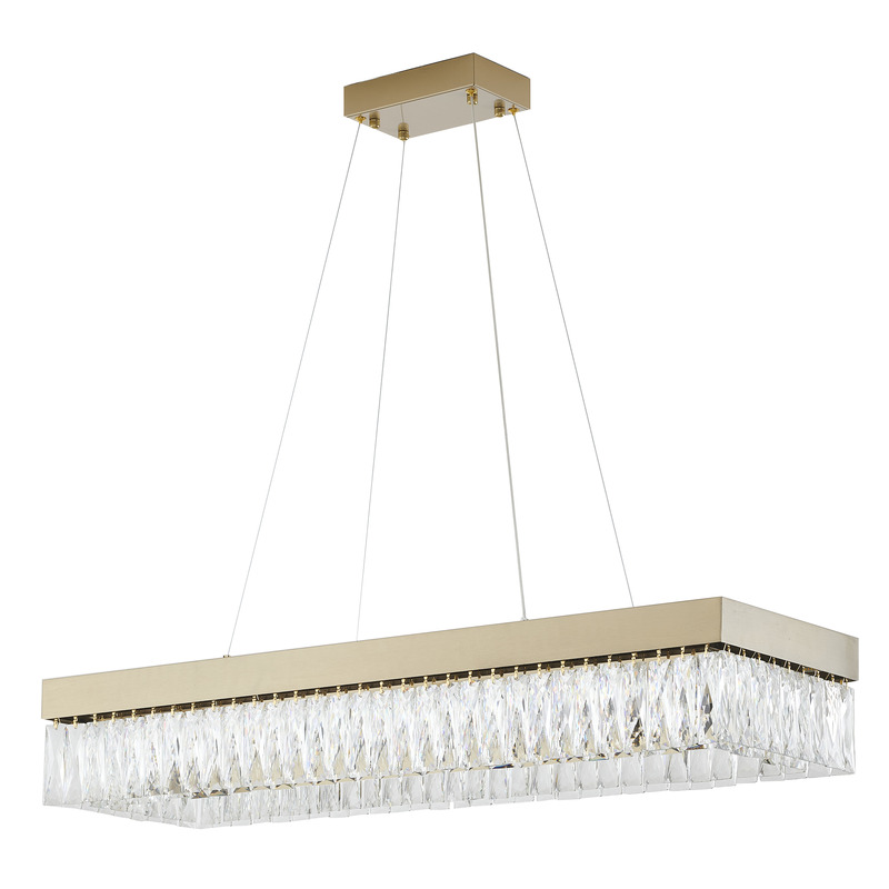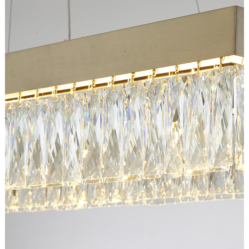 A GOLD HAIRLINE FRAME LED CHANDELIER WITH CLEAR HANGING CRYSTALS