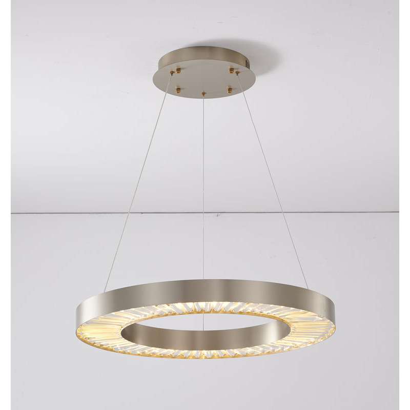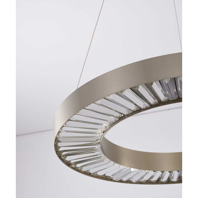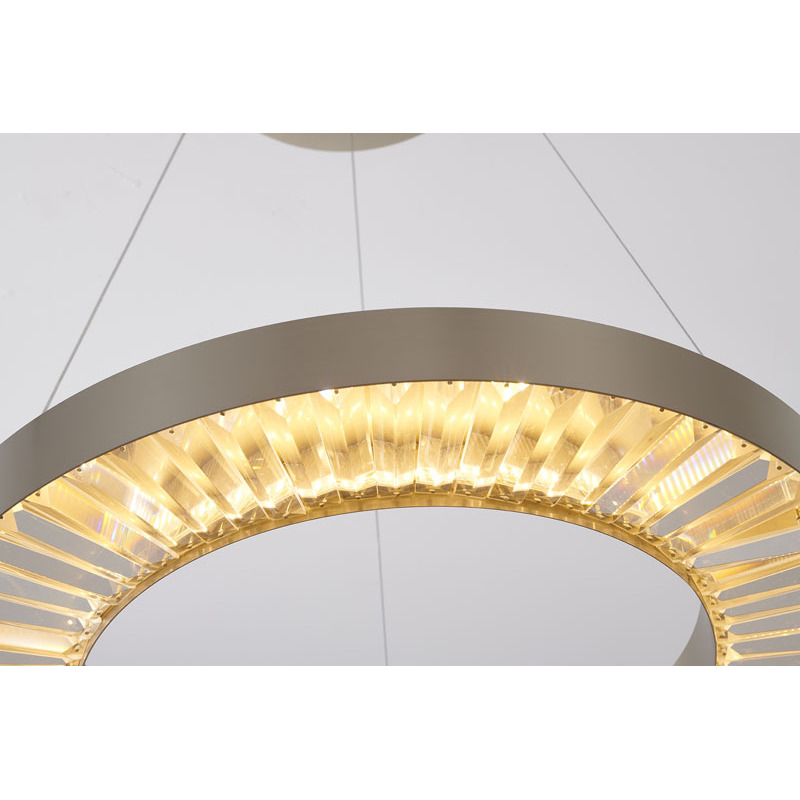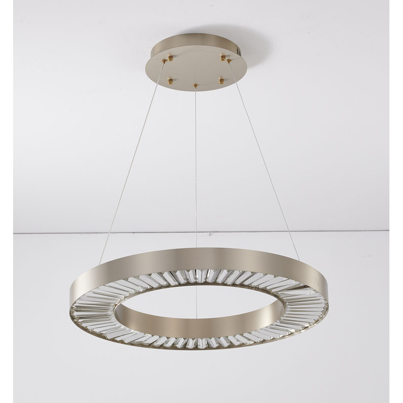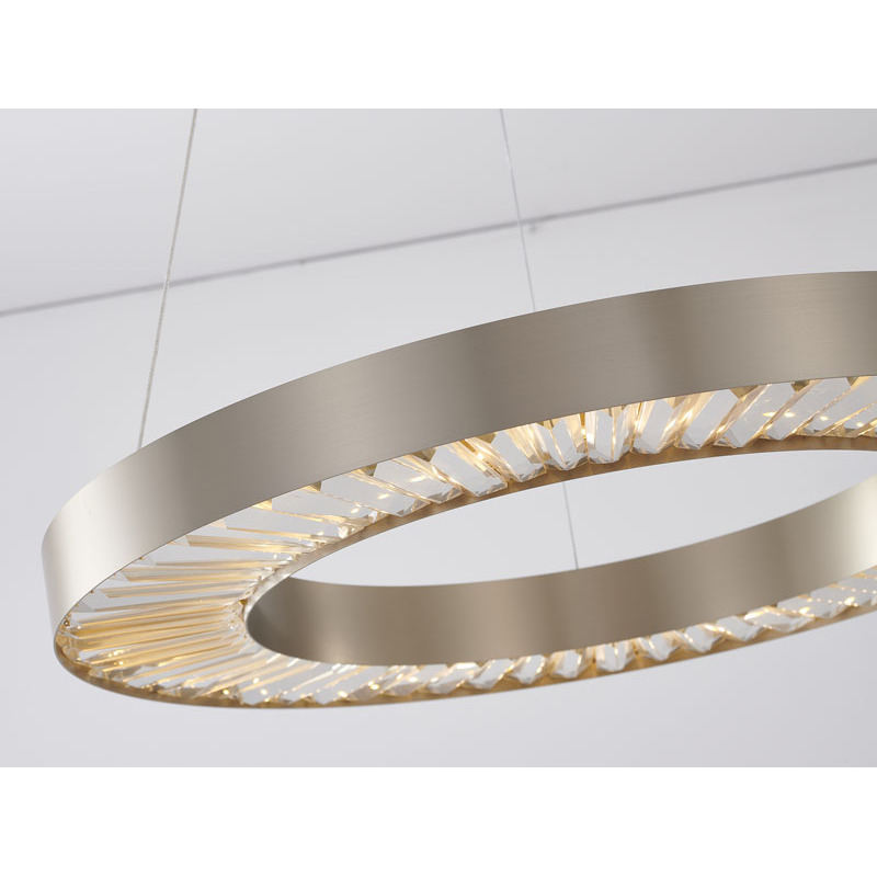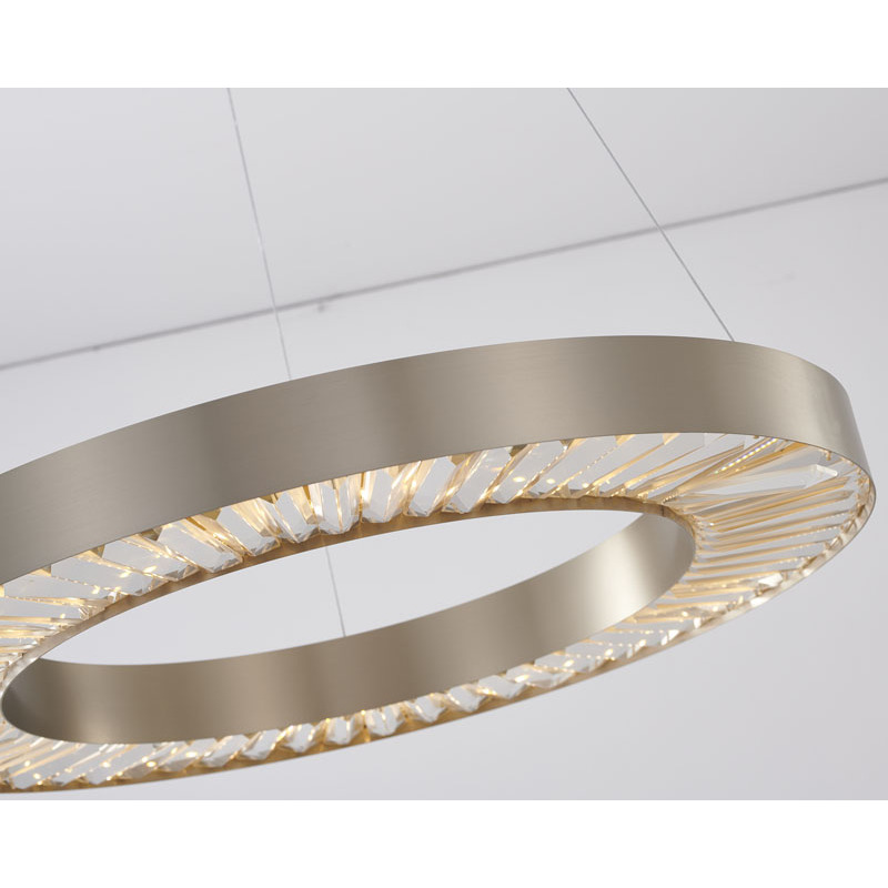 A GOLD HALO FRAME LED CHANDELIER WITH CLEAR CRYSTALS