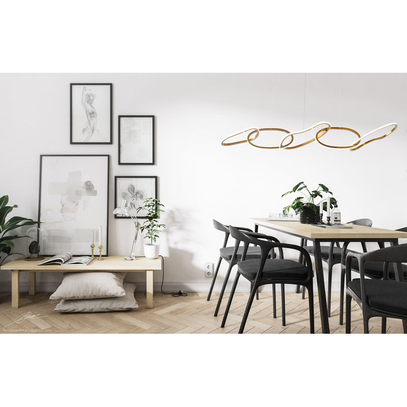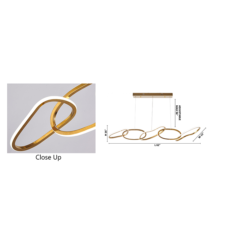 A GOLD STAINLESS STEEL INTERLOCKED CHANDELIER WITH A SILICON DIFFUSER