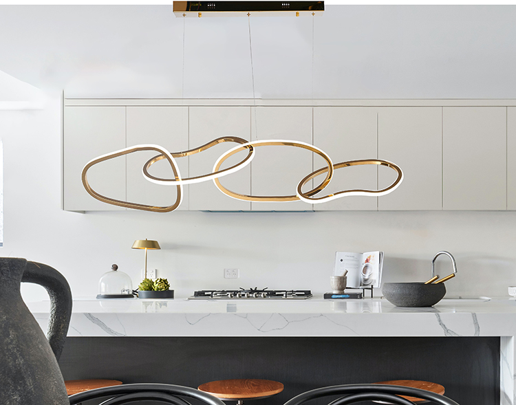 A GOLD STAINLESS STEEL INTERLOCKED CHANDELIER WITH A SILICON DIFFUSER