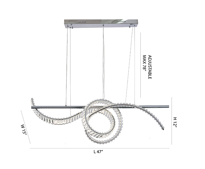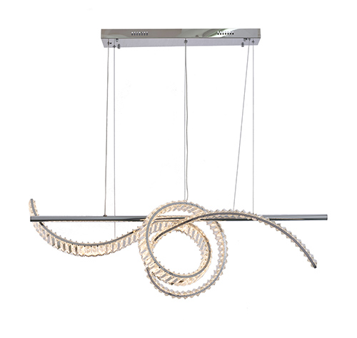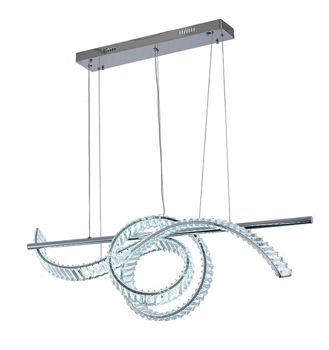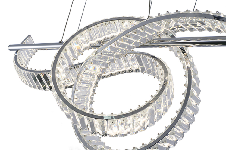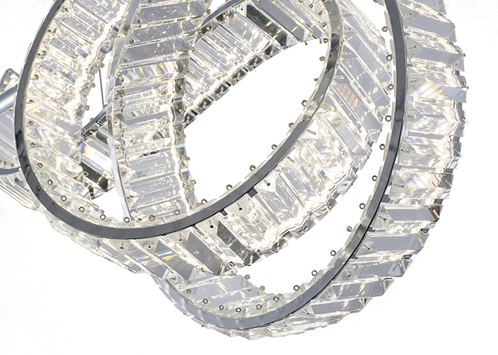 DIMMABLE LED CHANDELIER WITH A CHROME STEEL FRAME AND CLEAR CRYSTALS