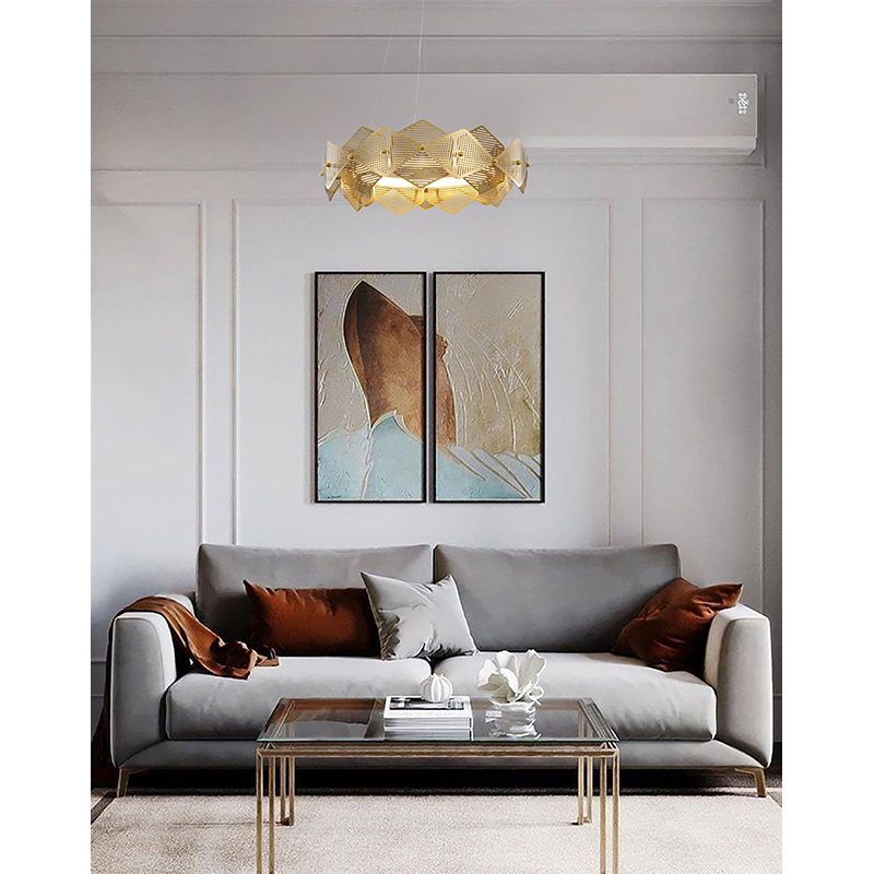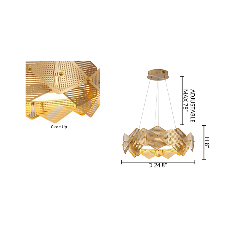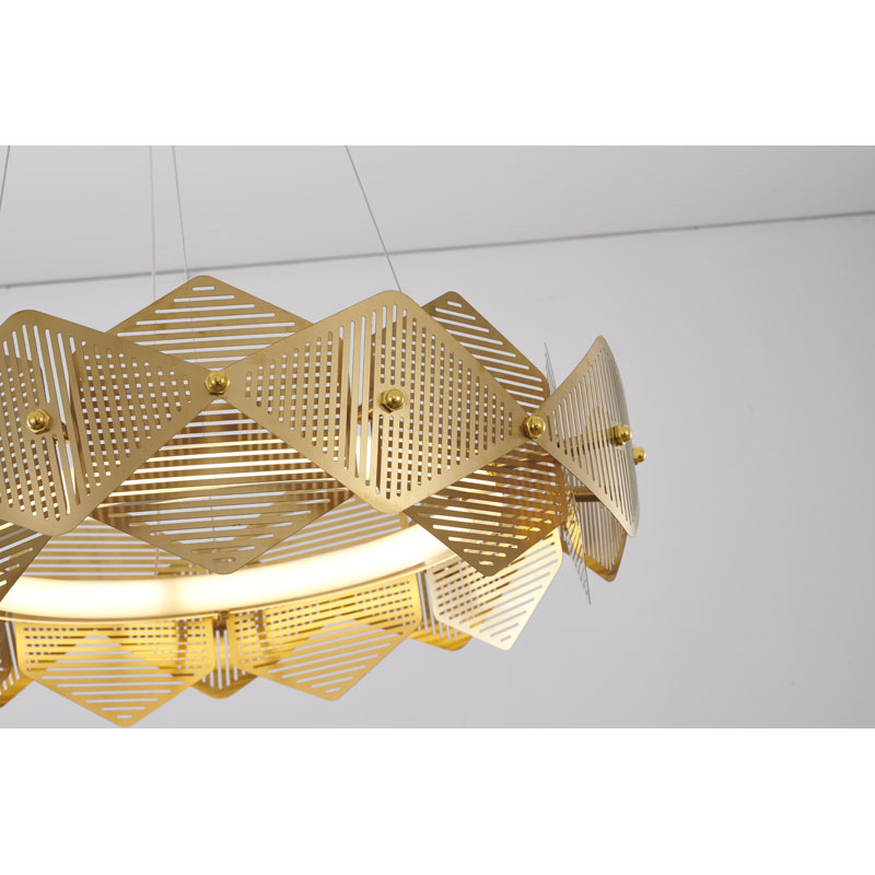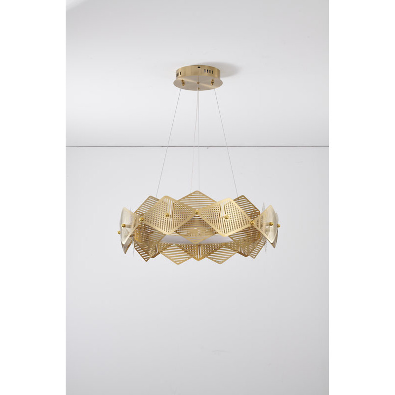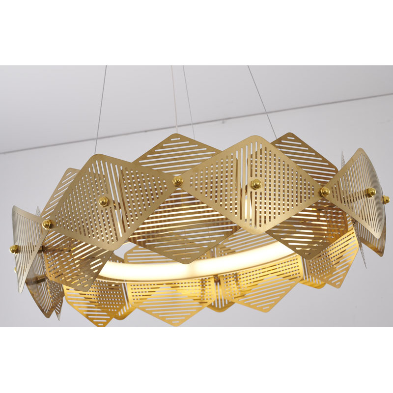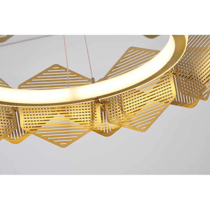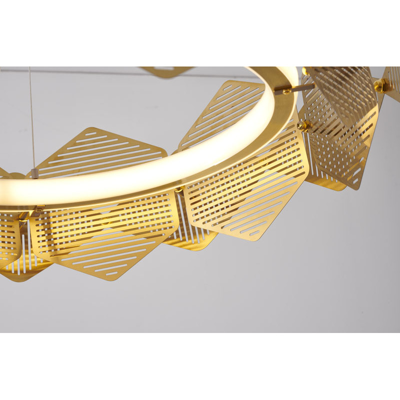 A BRASS HALO RING CHANDELIER WITH A STAINLESS STEEL CAGE FRAME & ACRYLIC DIFFUSER