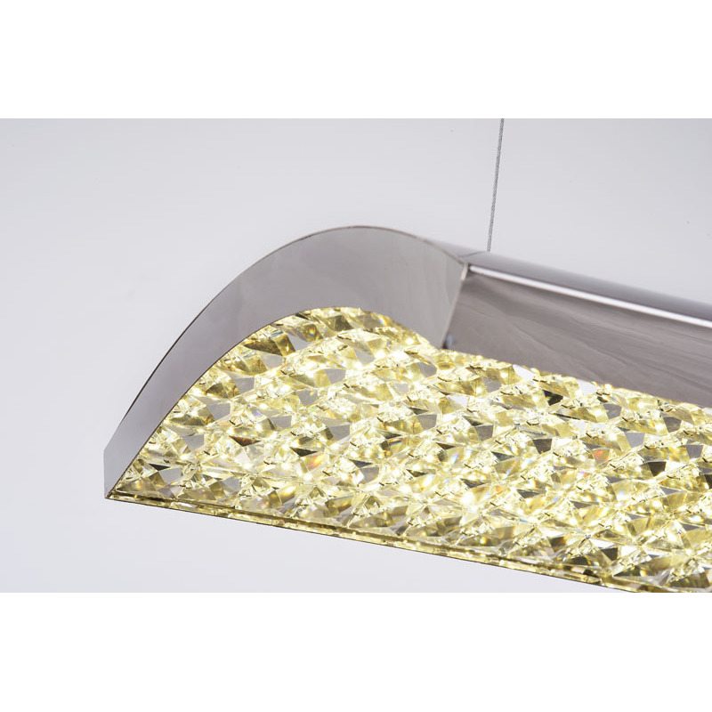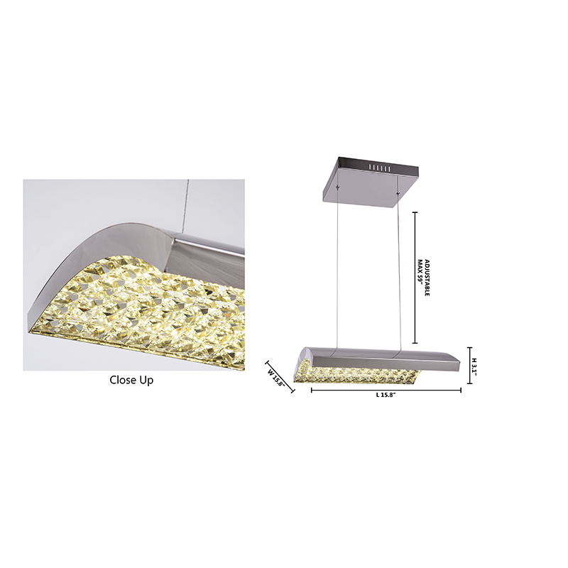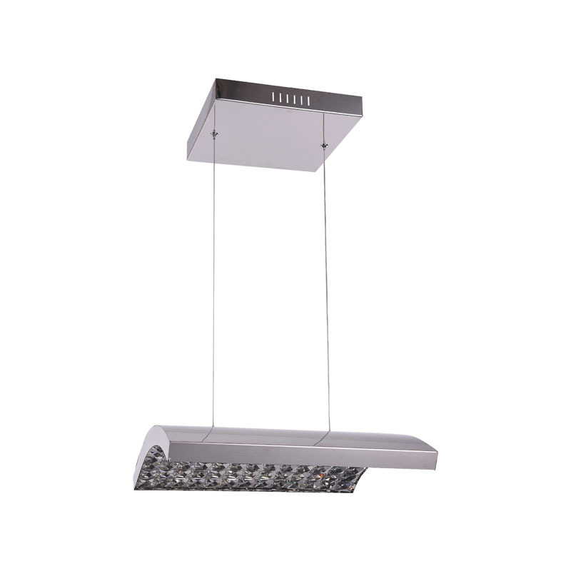 CURVED STAINLESS STEEL FRAME LED LIGHT FIXTURE WITH A CLEAR CRYSTAL INTERIOR