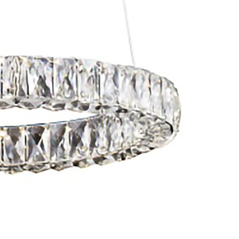 A CLEAR CRYSTAL HALO RING CHANDELIER WITH CHROME HARDWARE