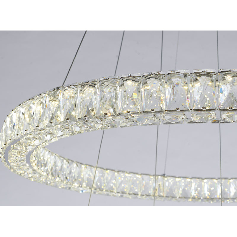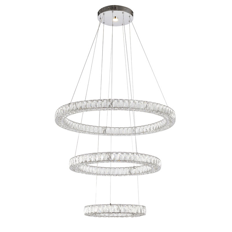 A THREE TIER LED CHANDELIER WITH CLEAR CRYSTALS & CHROME HARDWARE