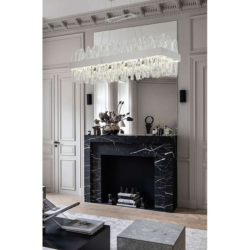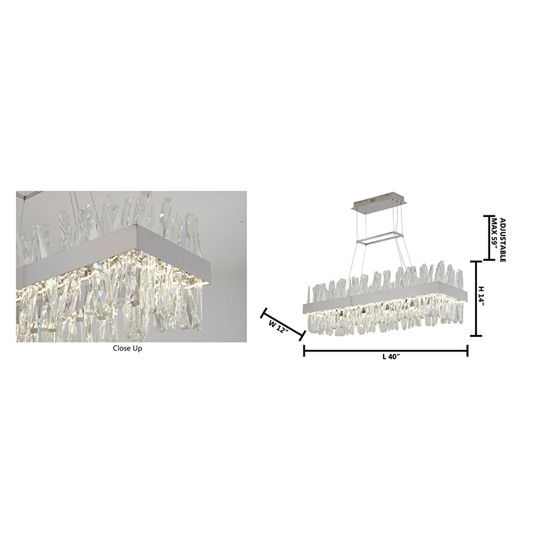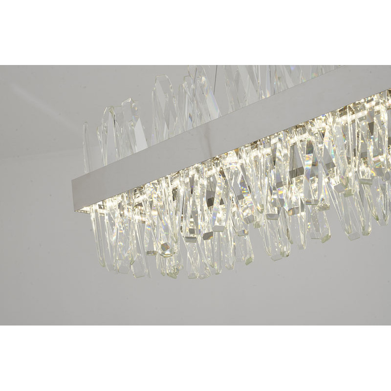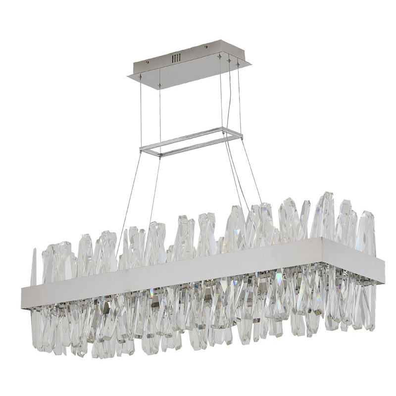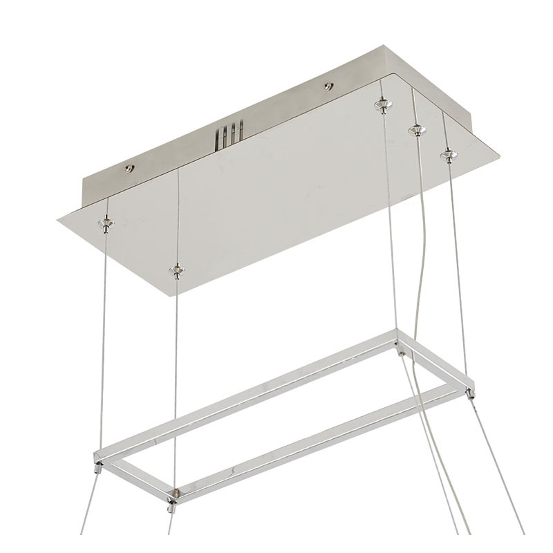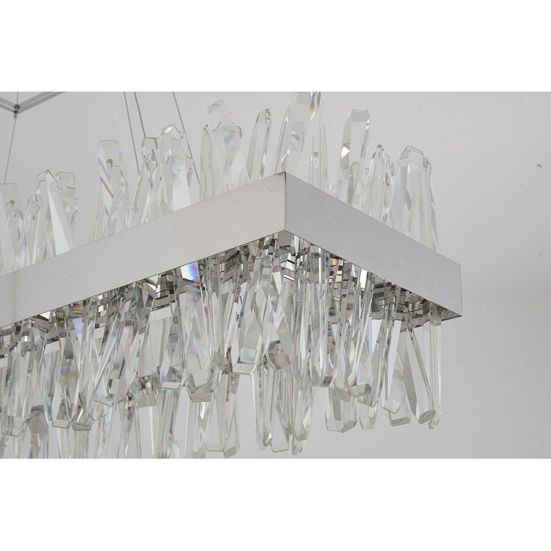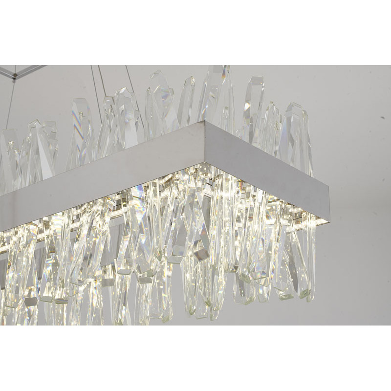 A RECTANGULAR CHROME FRAME CHANDELIER WITH CLEAR CRYSTALS