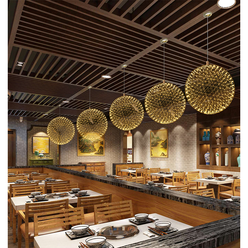 A ROUND GOLD METAL FRAME CEILING FIXTURE WITH LED STAR LIGHTS