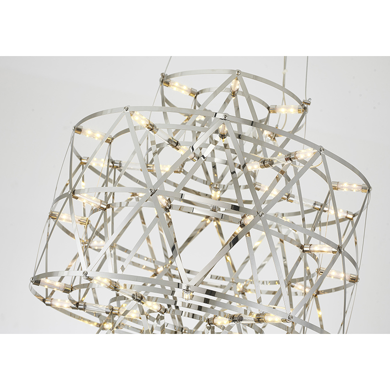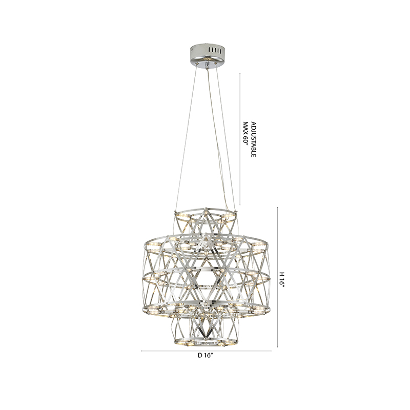 A THREE TIER CHANDELIER WITH CHROME HARDWARE & FIXED LED STAR LIGHT BULBS