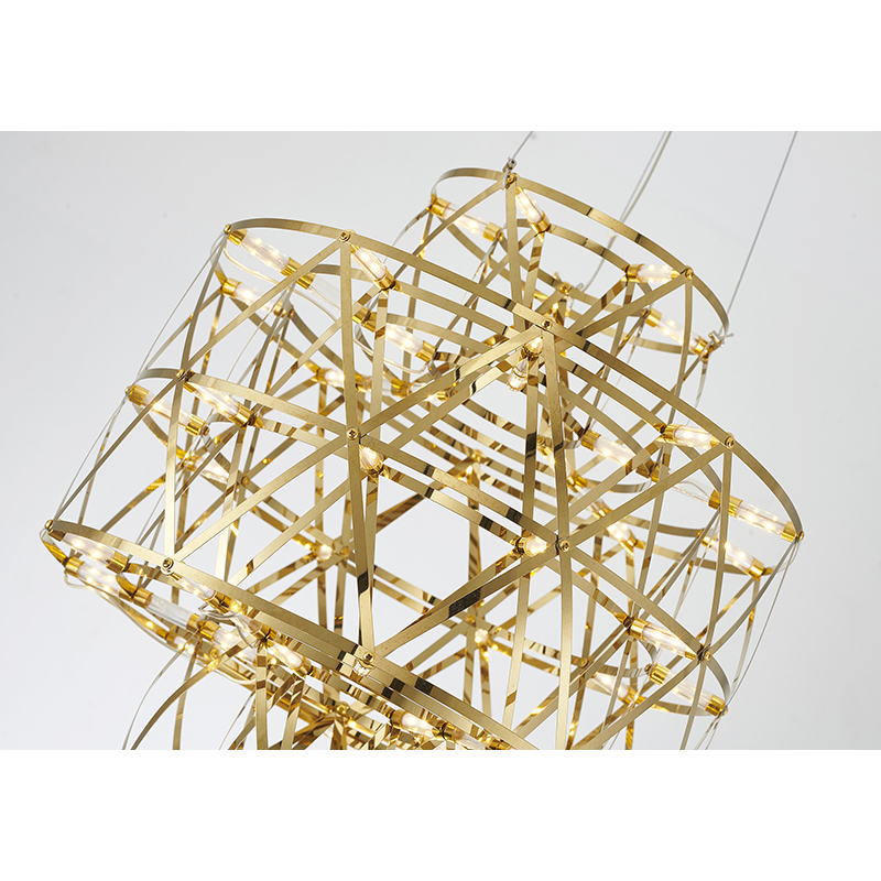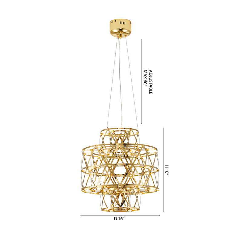 A THREE TIER CHANDELIER WITH GOLD HARDWARE & FIXED LED STAR LIGHT BULBS