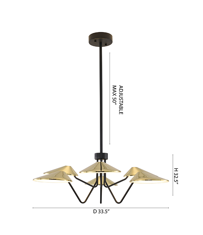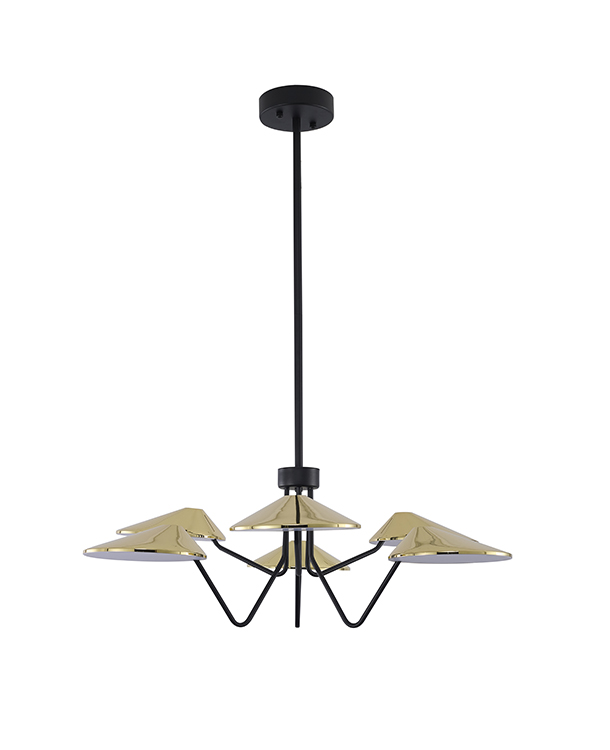 BLACK AND SHINNY BRASS IRON LED CHANDELIER WITH WHITE ACRYLIC SHADES