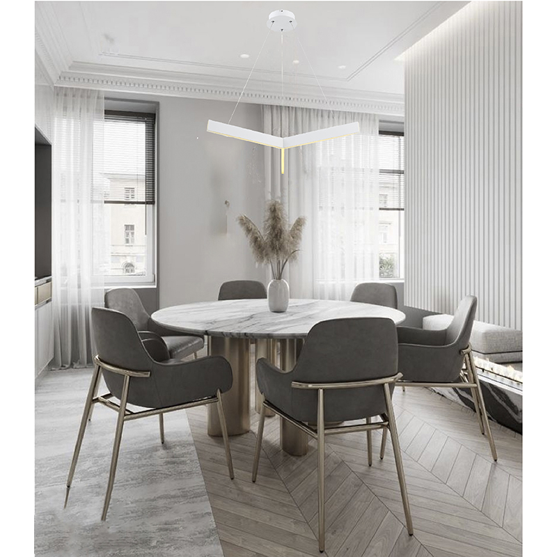 A WHITE METAL AND ACRYLIC "Y" SHAPED FRAME LED LIGHT FIXTURE
