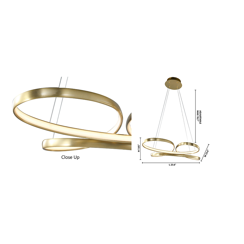 A GOLD ALUMINIUM FRAME CHANDELIER WITH A WHITE ACRYLIC DIFFUSER
