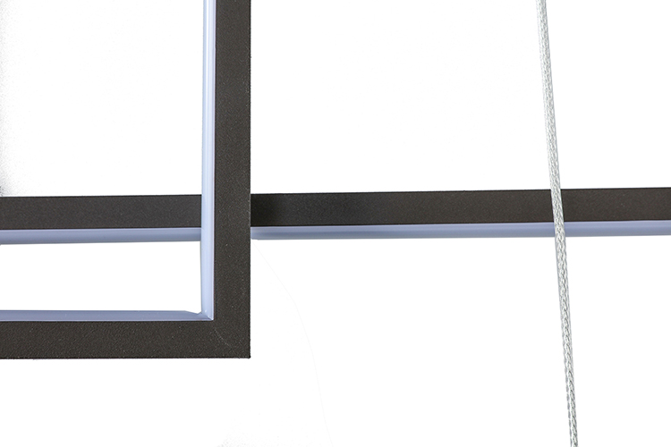 A SATIN COFFEE ALUMINUM FRAME LED BOX LIGHTS FLUSHED TO A RECTANGULAR CANOPY