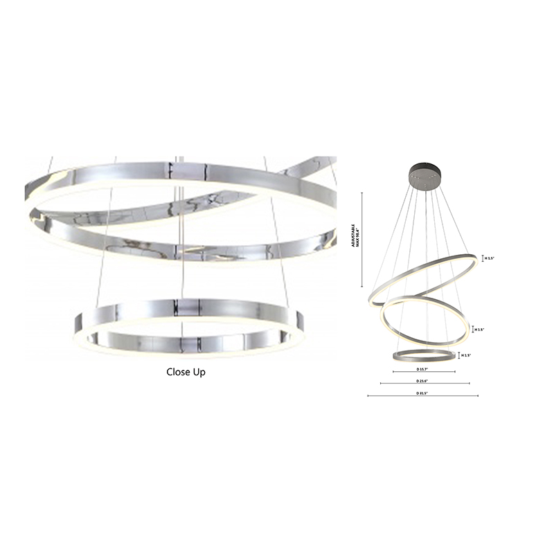 A THREE HALO RING CHROME FRAME LED CEILING FIXTURE