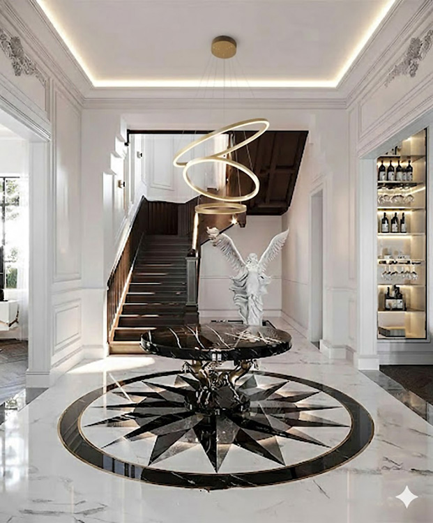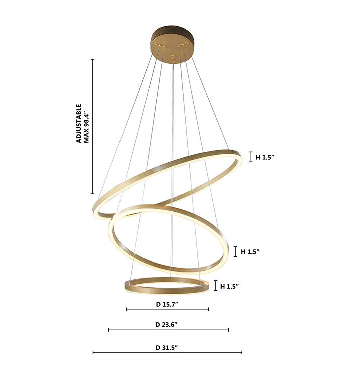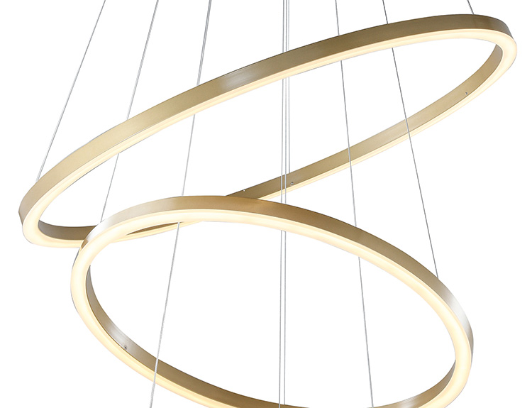 A THREE RING GOLD ALUMINIUM FRAME LED CEILING FIXTURE WITH WHITE ACRYLIC DIFFUSERS