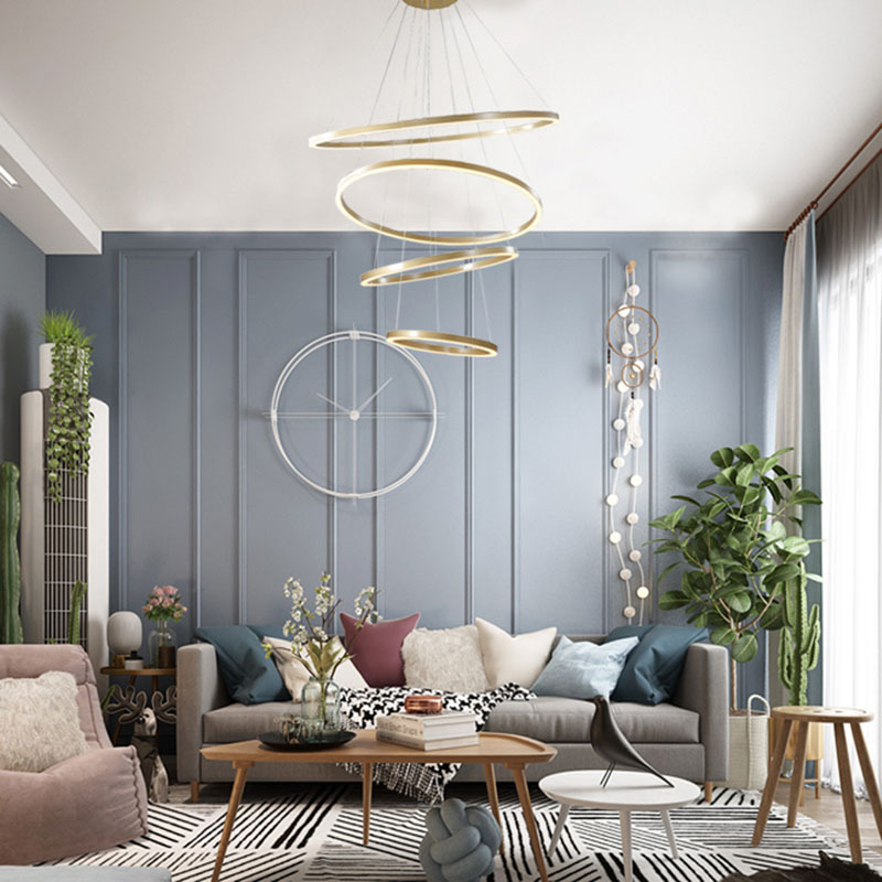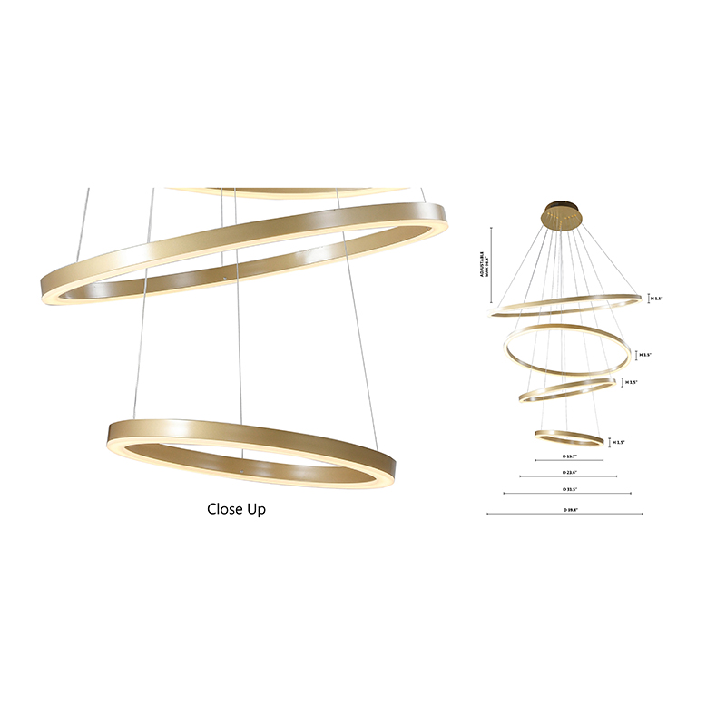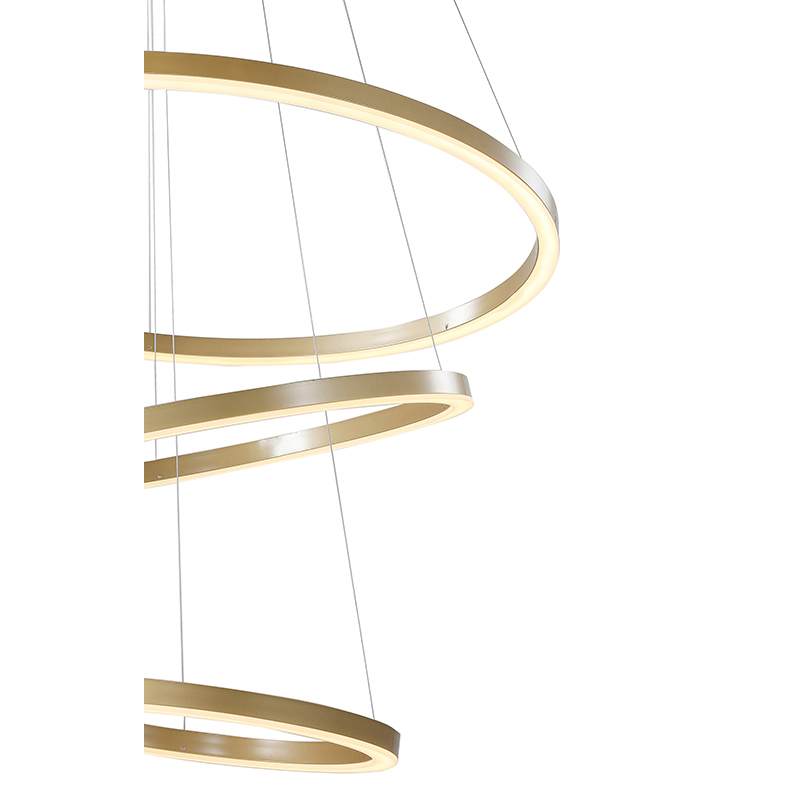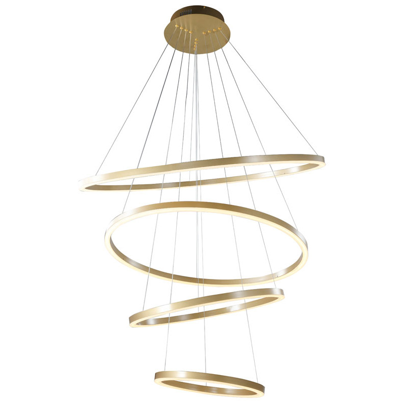 A FOUR RING GOLD ALUMINIUM FRAME LED CEILING FIXTURE WITH WHITE ACRYLIC DIFFUSERS