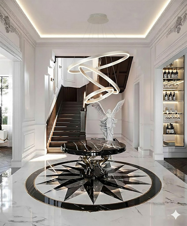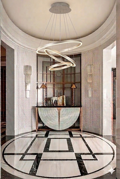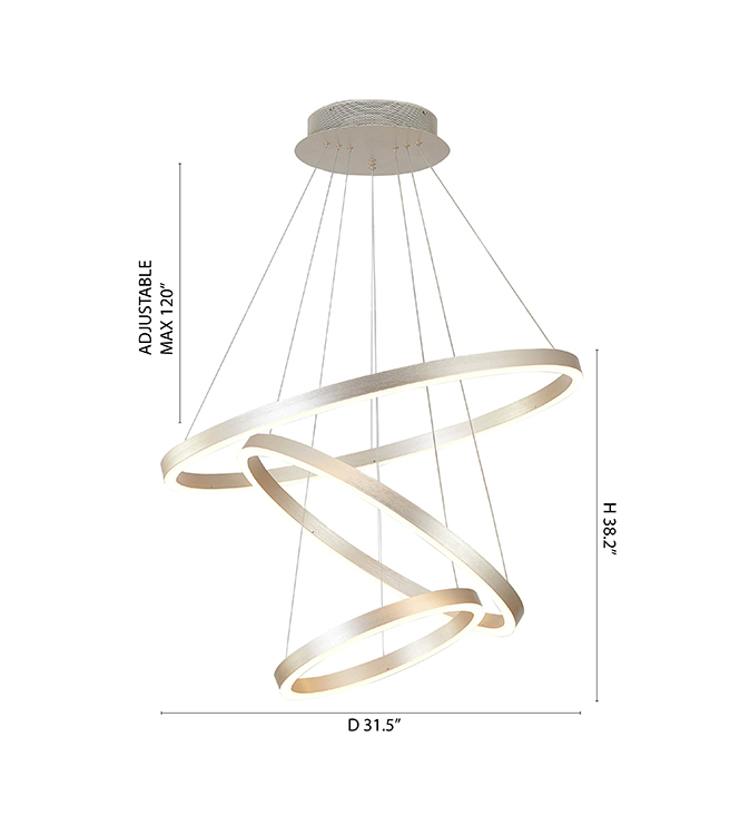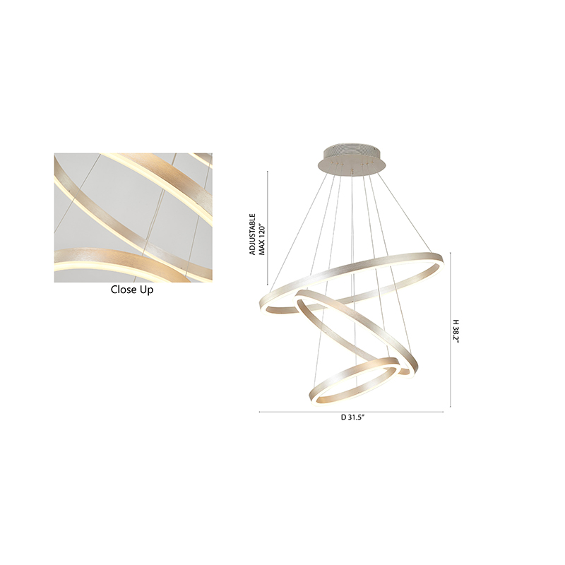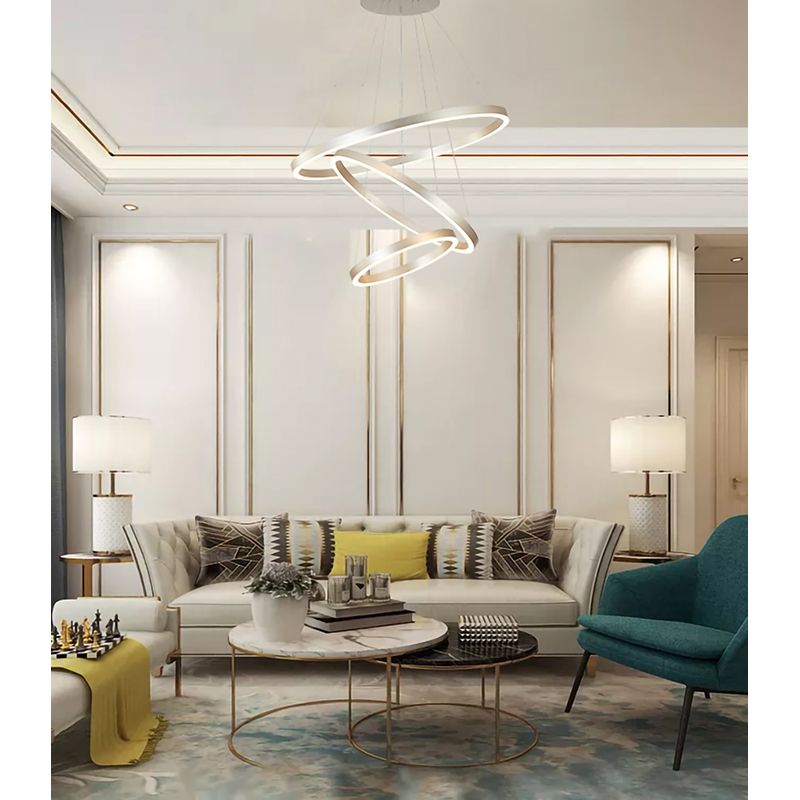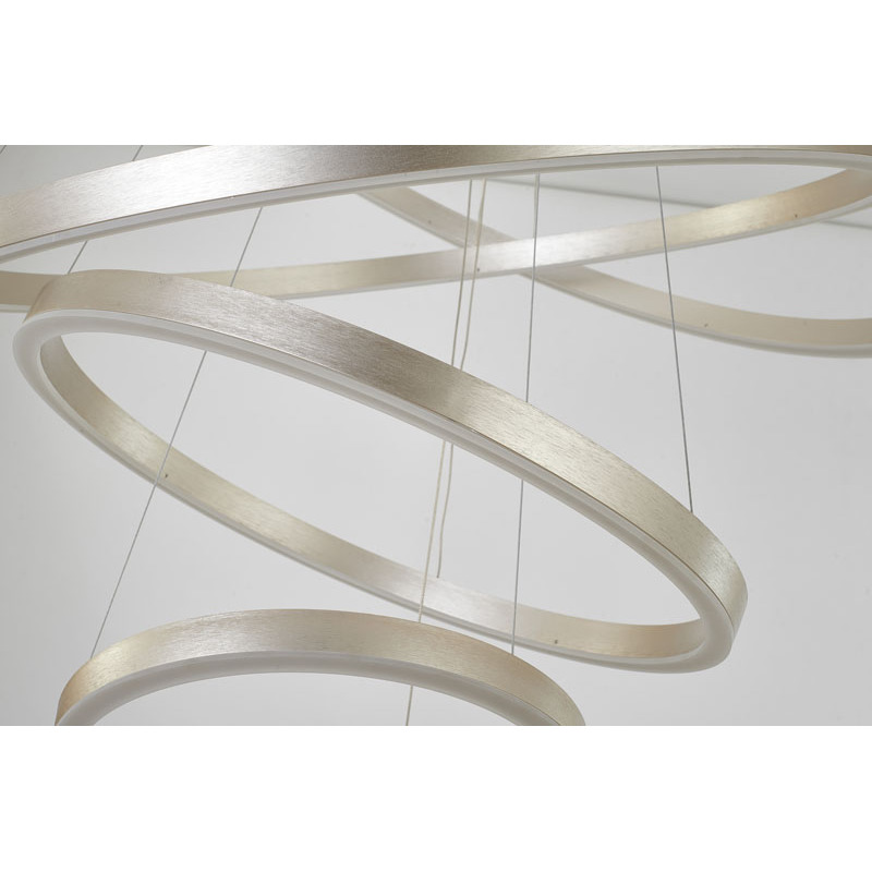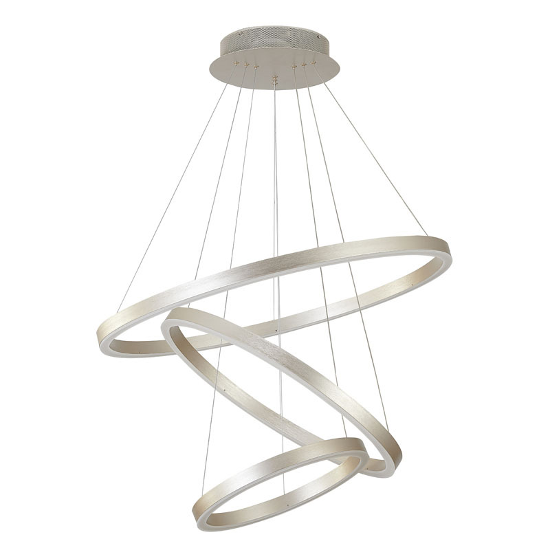 A BRUSHED NICKEL ALUMINIUM FRAME LED CEILING FIXTURE WITH THREE HALO RINGS