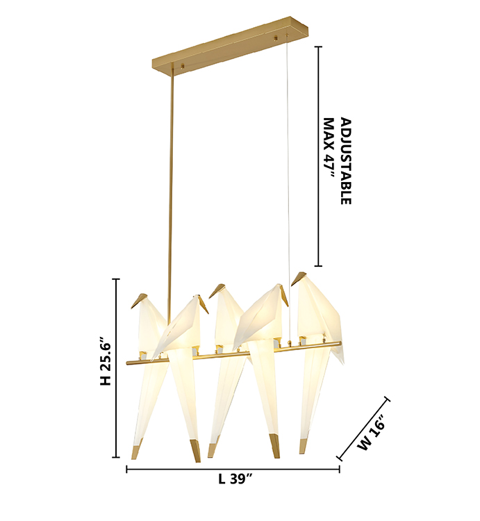AN LED LIGHT OF WHITE BIRDS SITTING ON A GOLD FRAMED ARM