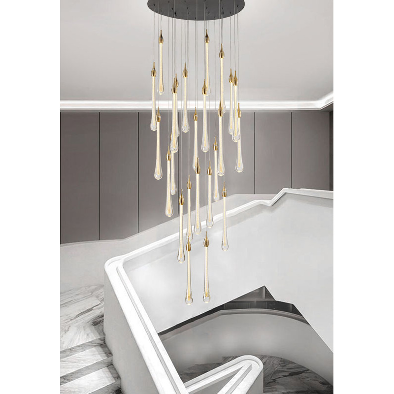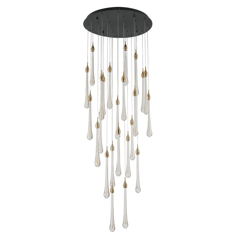 A CHARCOAL BLACK ROUND CANOPY LED LIGHT WITH GOLD DUSTED GLASS HANGING PENDANTS