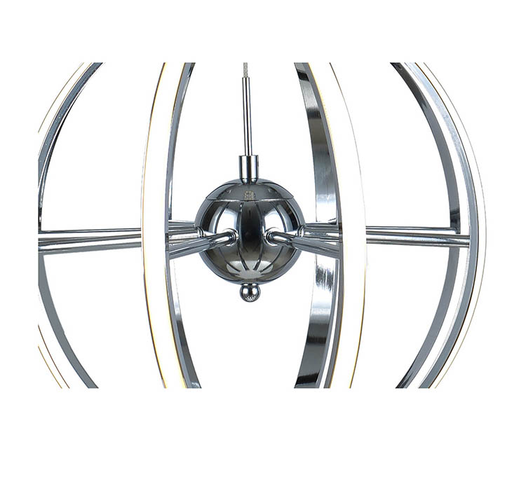 AN ALUMINIUM CHROME FRAME LED CHANDELIER WITH WHITE ACRYLIC DIFFUSERS